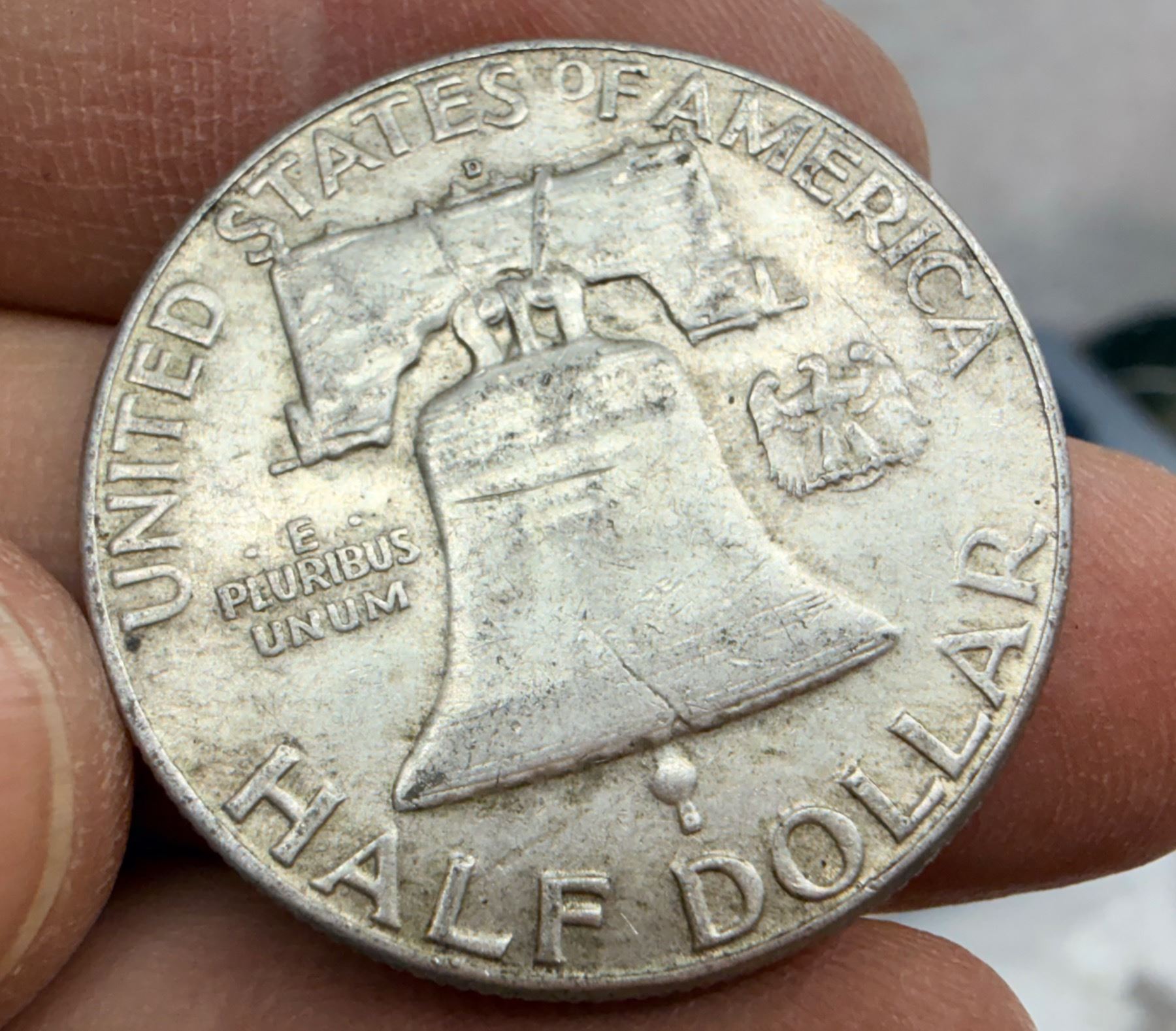 THE FRANKLIN SILVER HALF DOLLAR IS 90 PERCENT SILVER AND 10 PERCENT COPPER WITH A TOTAL WEIGHT OF 12.5 GRAMS, CONTAINS 0.36169 TROY OUNCE OF PURE SILVER, AND WAS MINTED FROM 1948-1963; THE WASHINGTON SILVER QUARTER DOLLAR IS 90 PERCENT SILVER AND 10 PERCENT COPPER WITH A TOTAL WEIGHT OF 6.25 GRAMS, CONTAINS 0.1808 TROY OUNCE OF PURE SILVER, AND WAS MINTED 1932-1964; AFTER 1964 (1965-PRESENT) THE WASHINGTON QUARTER DOLLAR REMAINS THE DESIGN