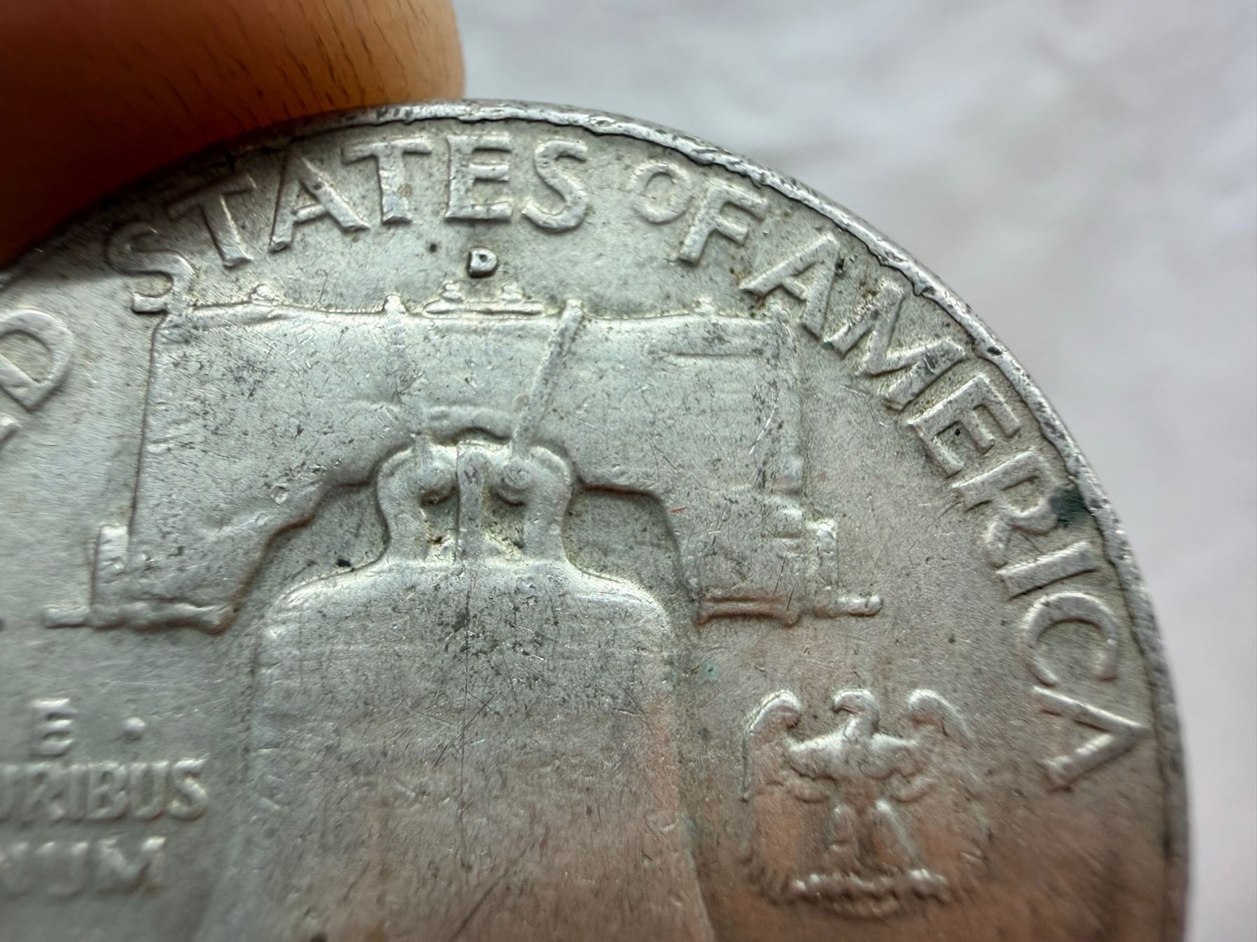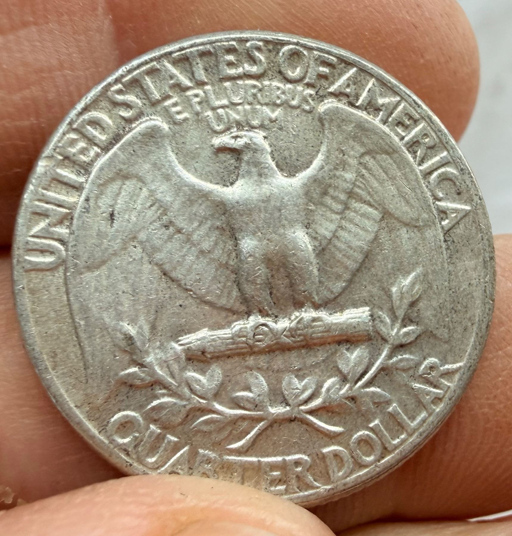 THE FRANKLIN SILVER HALF DOLLAR IS 90 PERCENT SILVER AND 10 PERCENT COPPER WITH A TOTAL WEIGHT OF 12.5 GRAMS, CONTAINS 0.36169 TROY OUNCE OF PURE SILVER, AND WAS MINTED FROM 1948-1963; THE WASHINGTON SILVER QUARTER DOLLAR IS 90 PERCENT SILVER AND 10 PERCENT COPPER WITH A TOTAL WEIGHT OF 6.25 GRAMS, CONTAINS 0.1808 TROY OUNCE OF PURE SILVER, AND WAS MINTED 1932-1964; AFTER 1964 (1965-PRESENT) THE WASHINGTON QUARTER DOLLAR REMAINS THE DESIGN