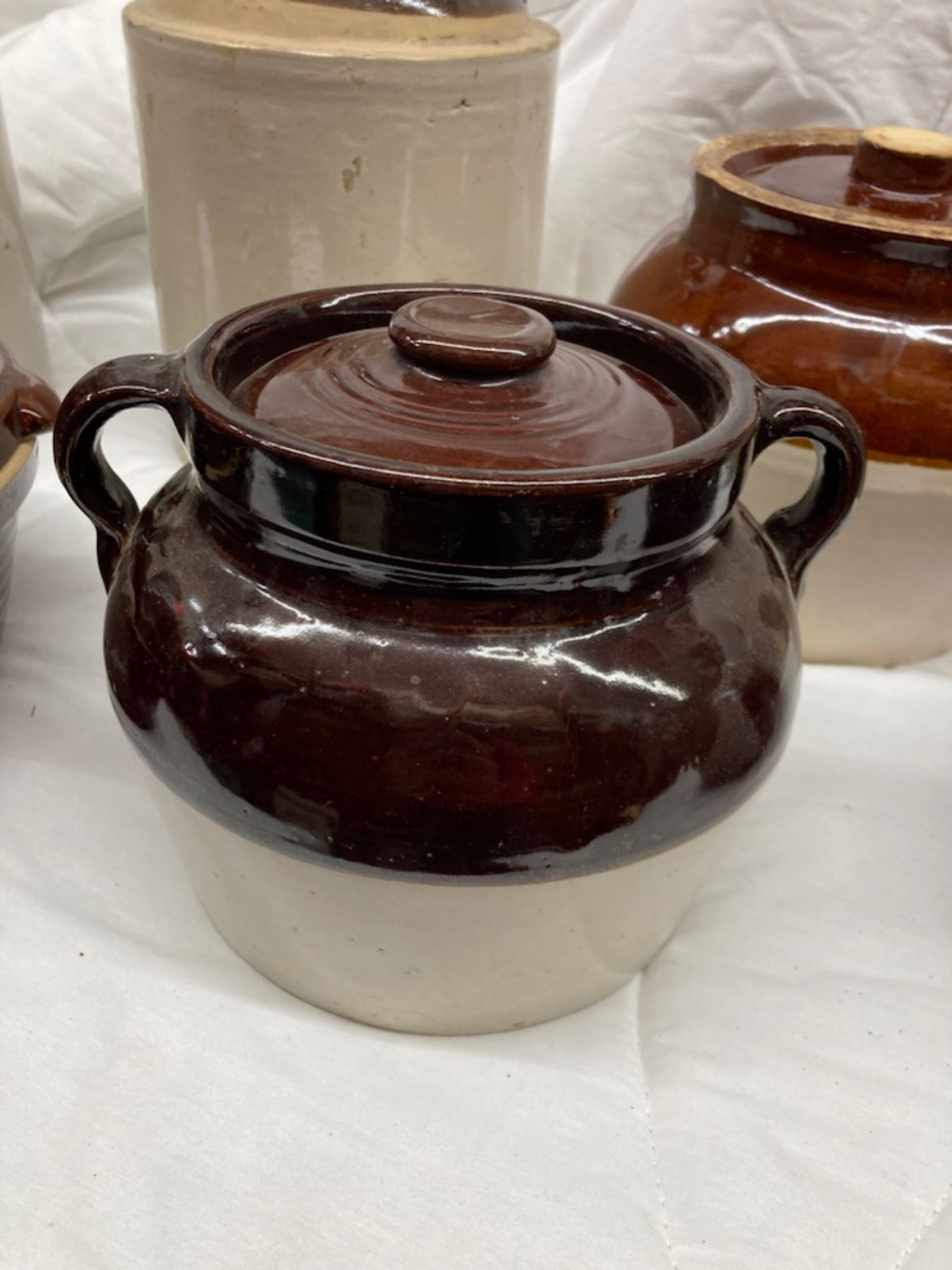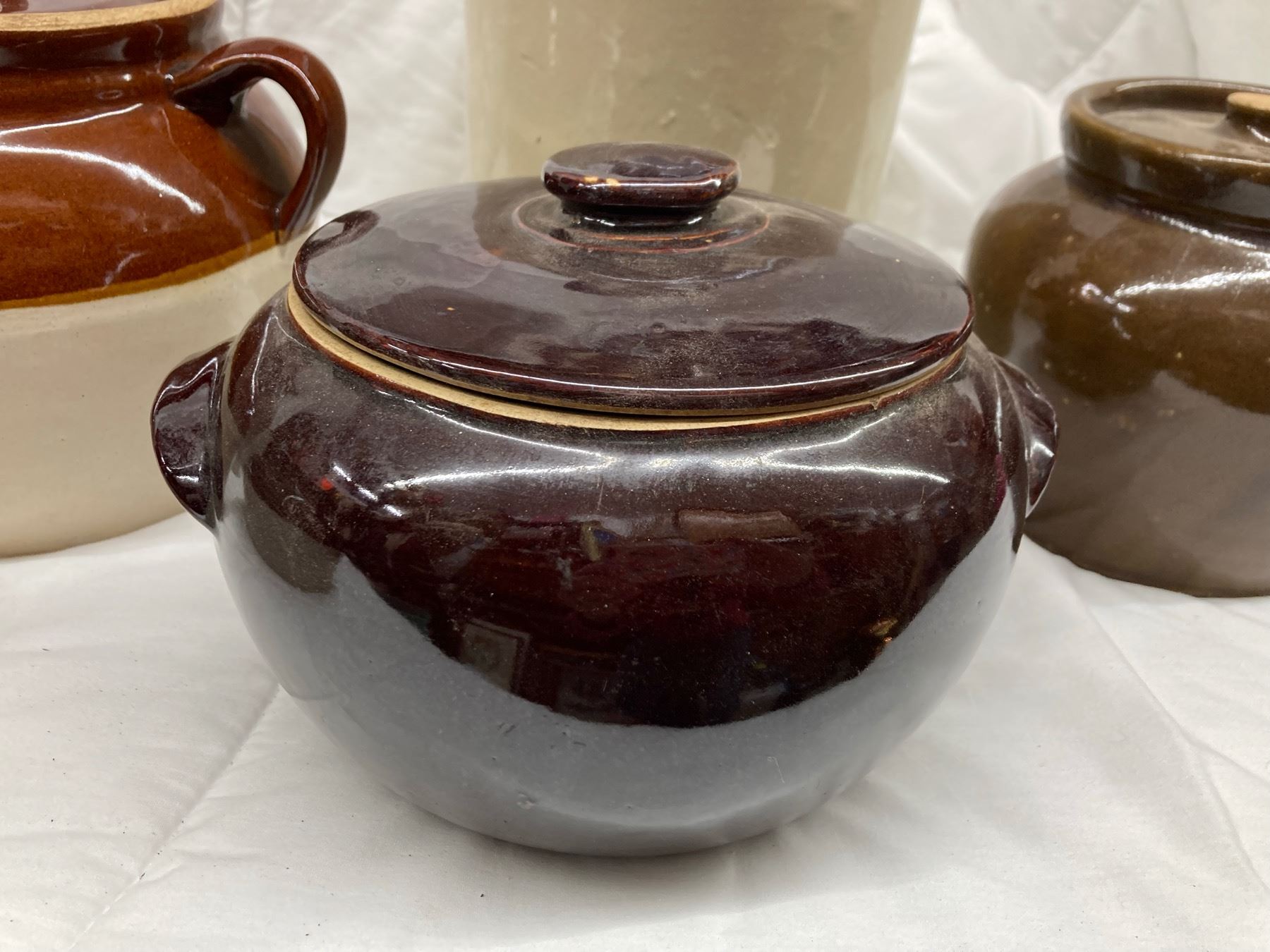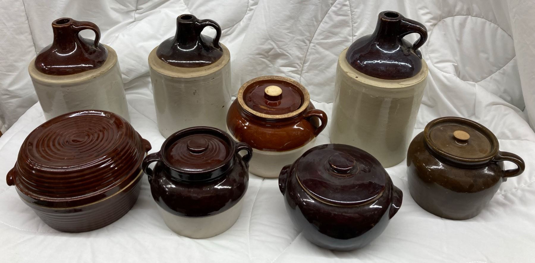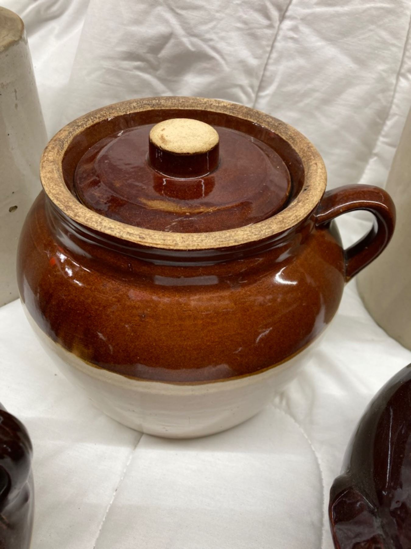 VINTAGE/ANTIQUE EARTHENWARE CROCKS, JUGS, AND BEAN POTS