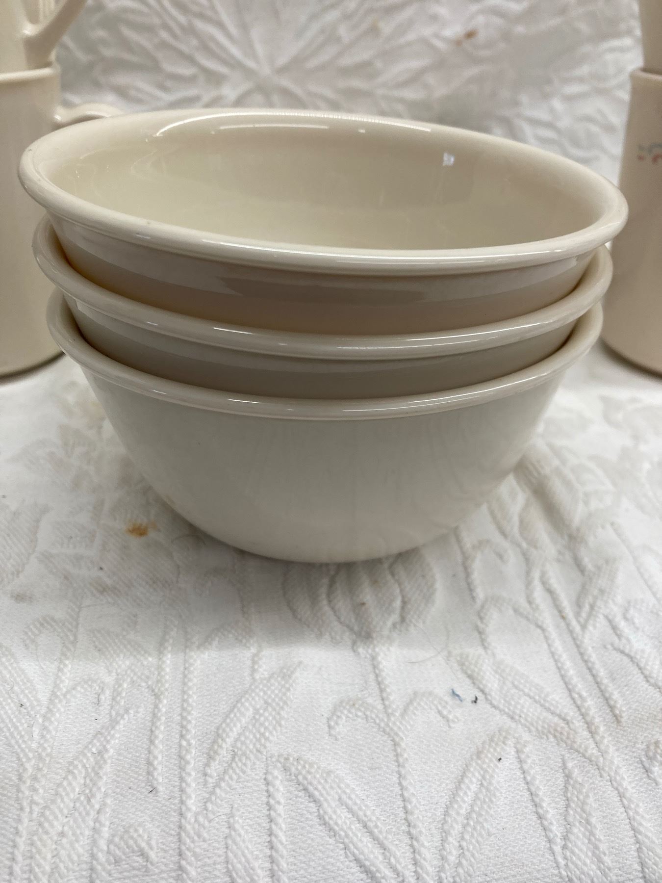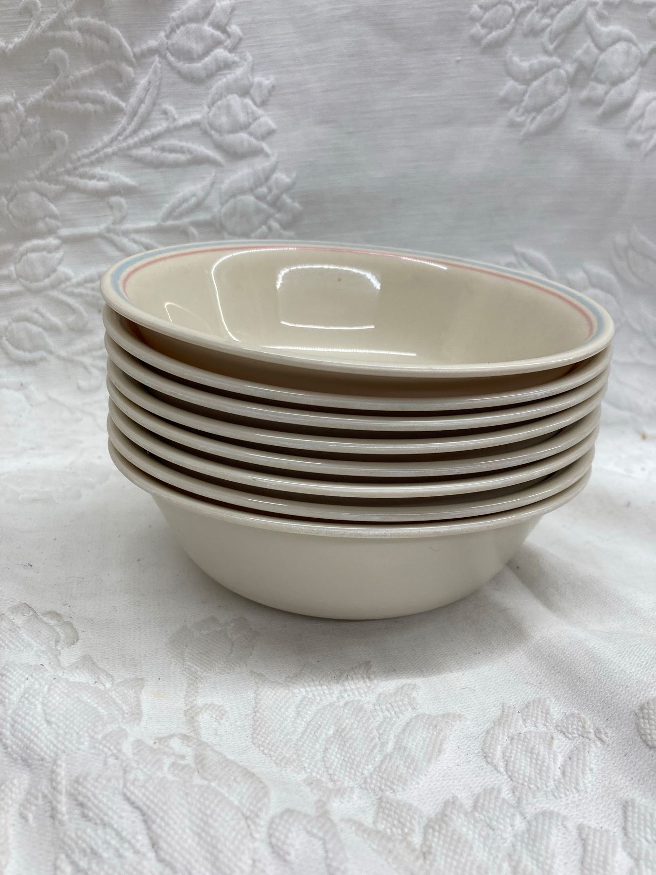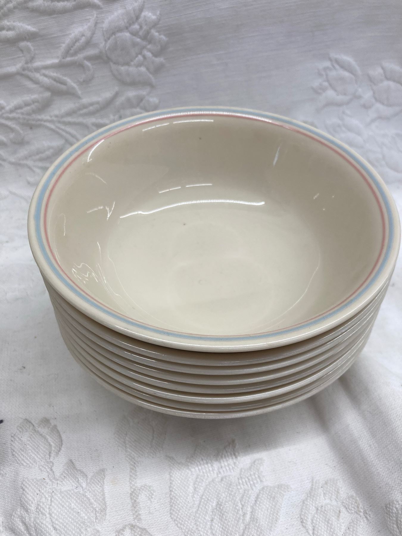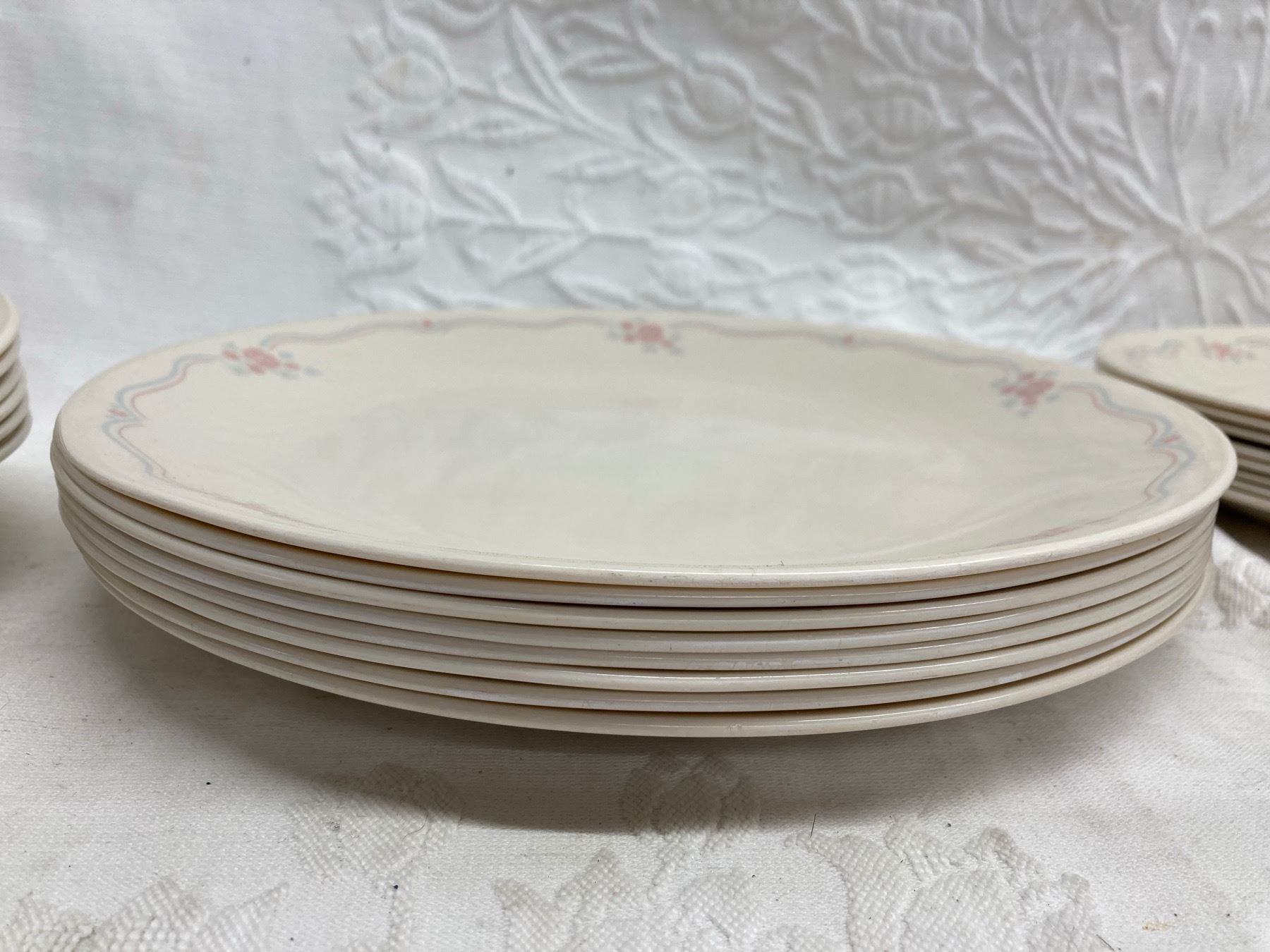 THE "ENGLISH BREAKFAST" PATTERN FEATURES A CREAM-COLORED BASE WITH A DELICATE PINK AND BLUE FLORAL DESIGN ALONG THE EDGES