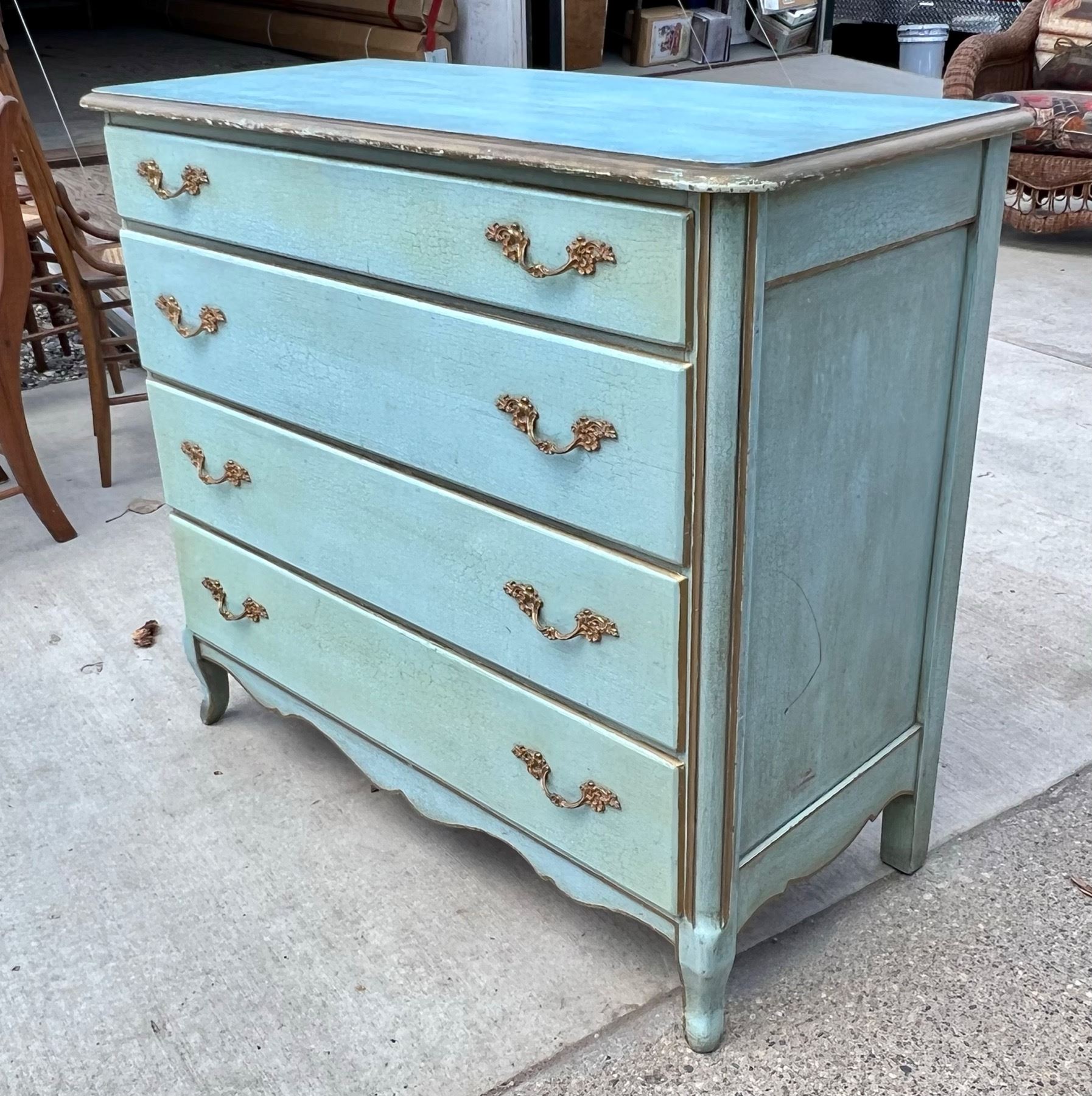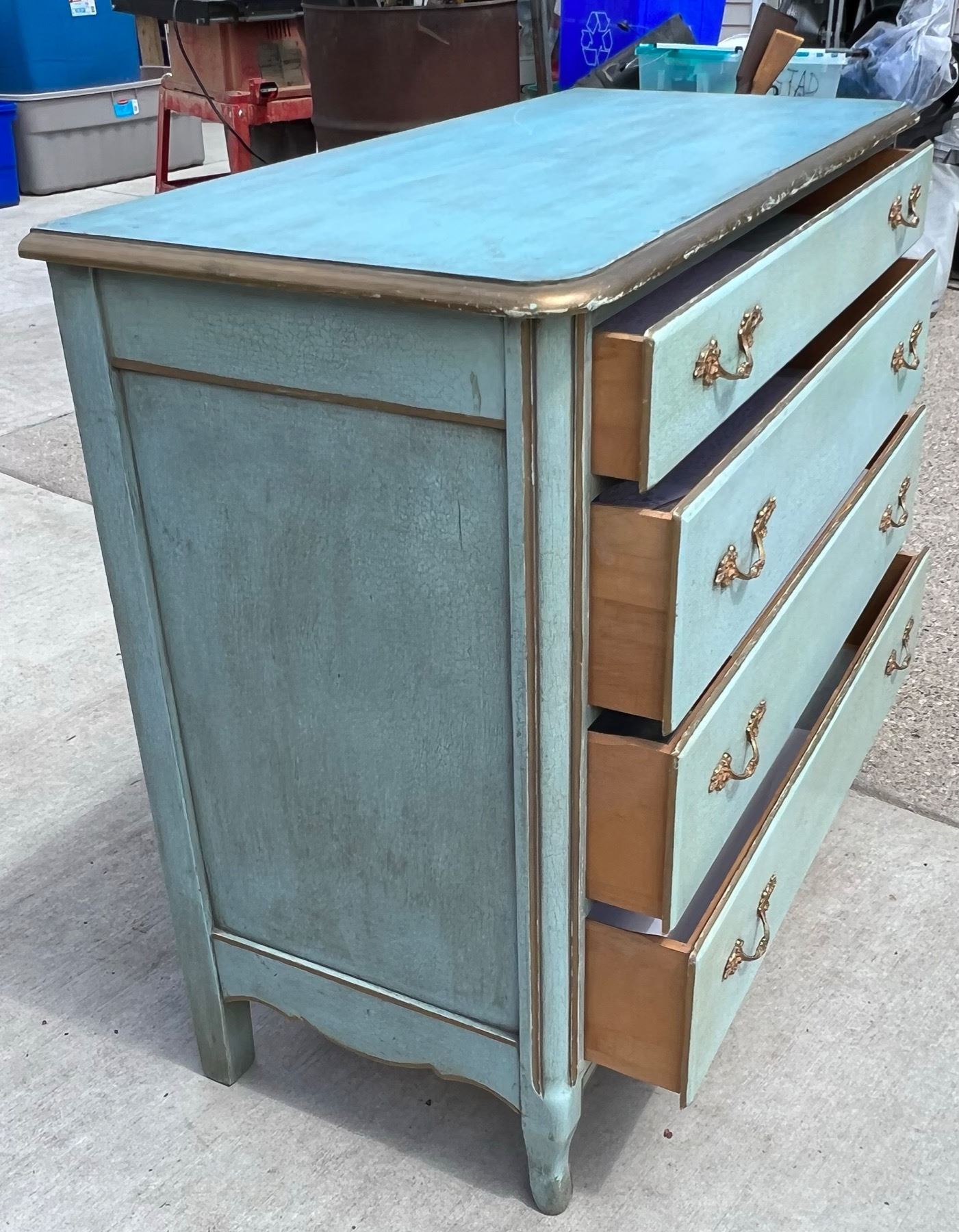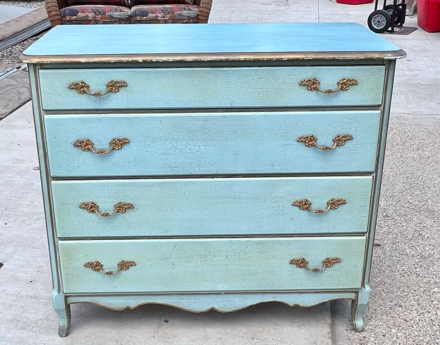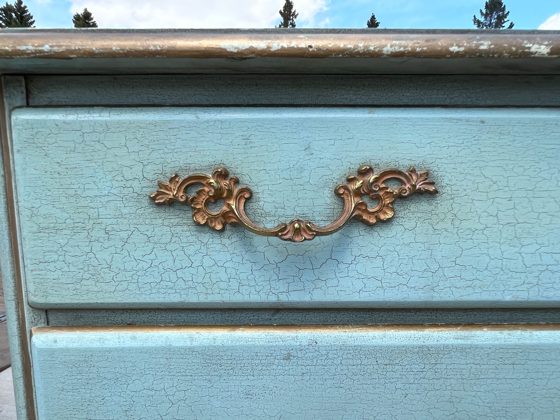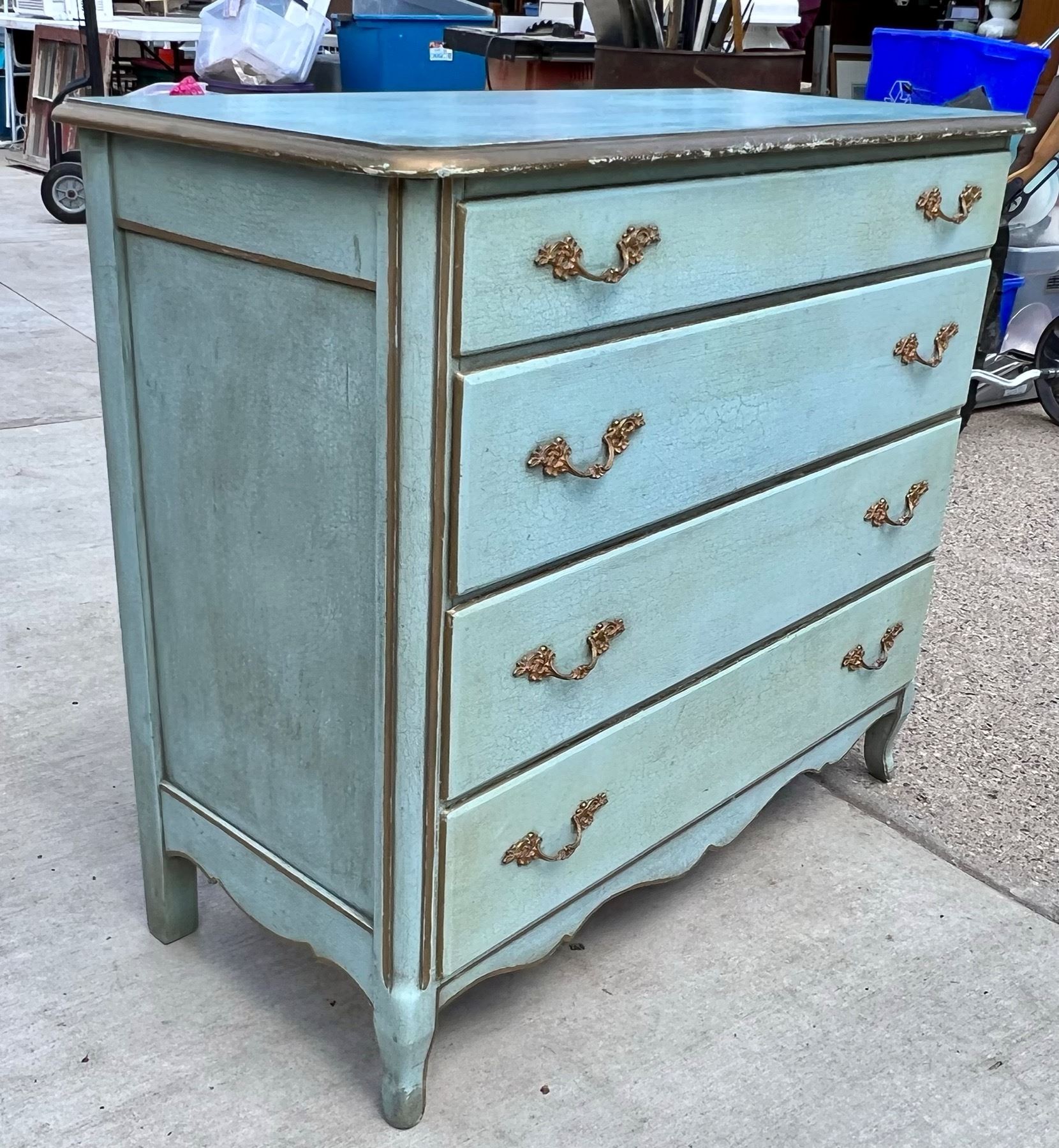 VINTAGE DRESSER REDONE IN CRACKLED BLUE
