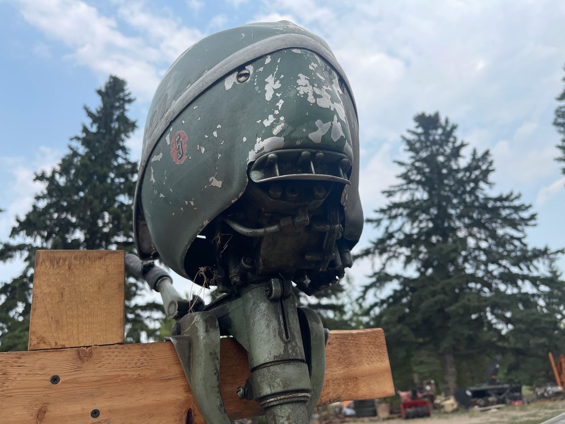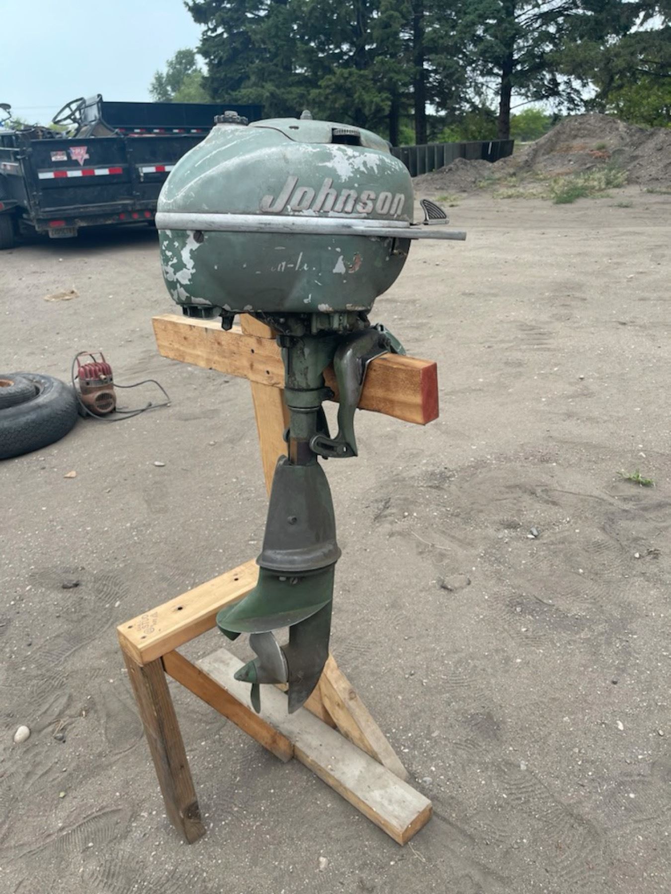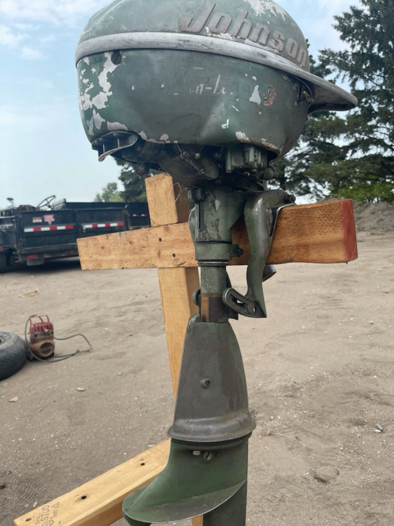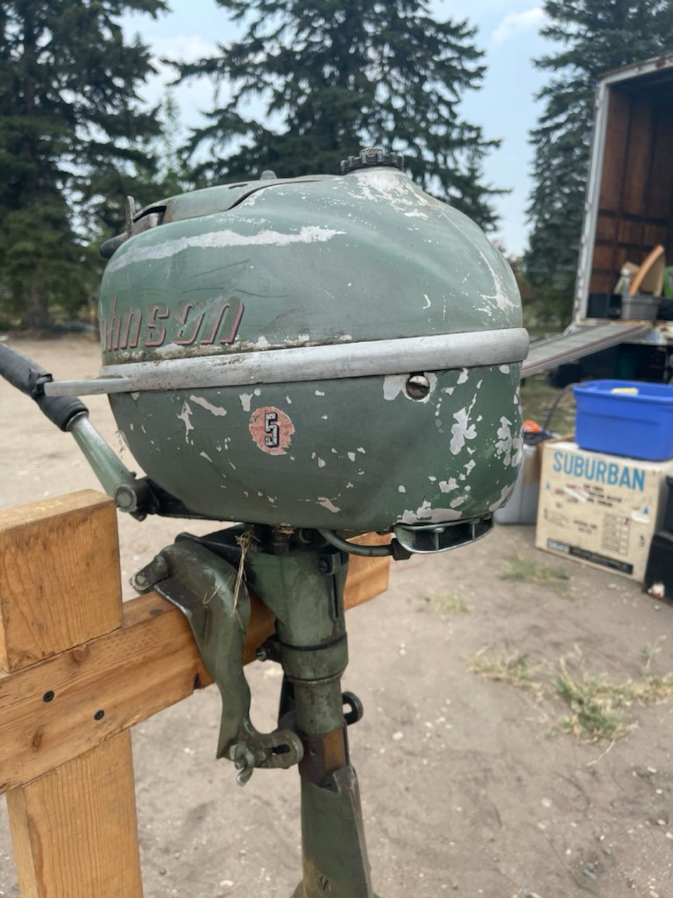 VINTAGE JOHNSON 5 HP OUTBOARD MOTOR; THE PULL START PULLS EASILY