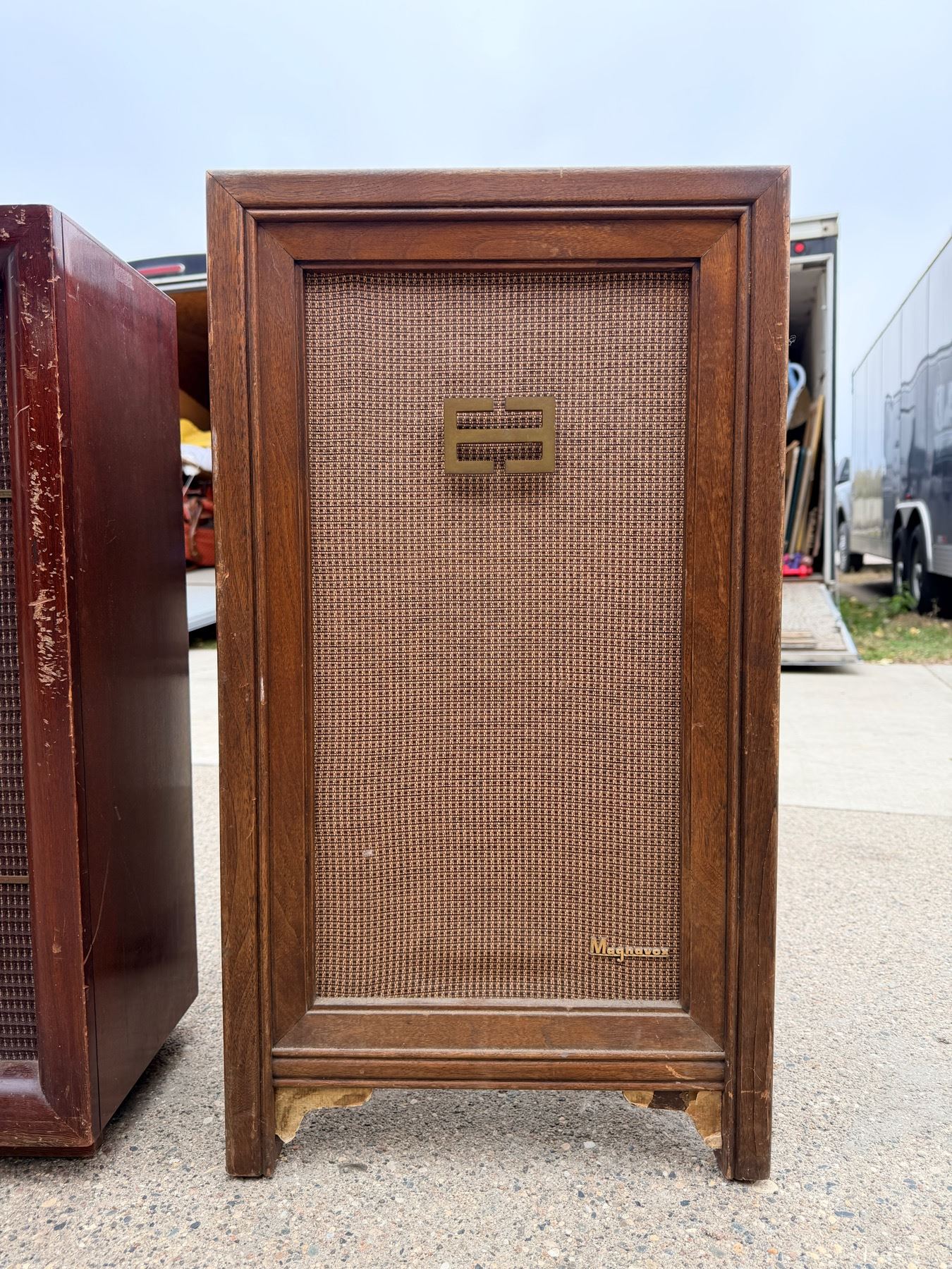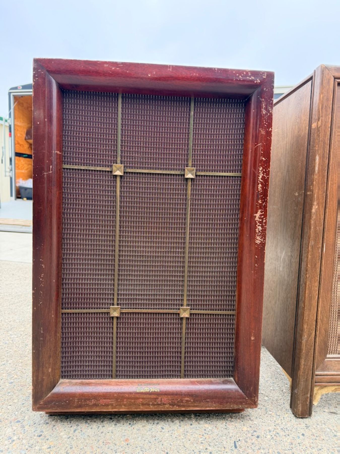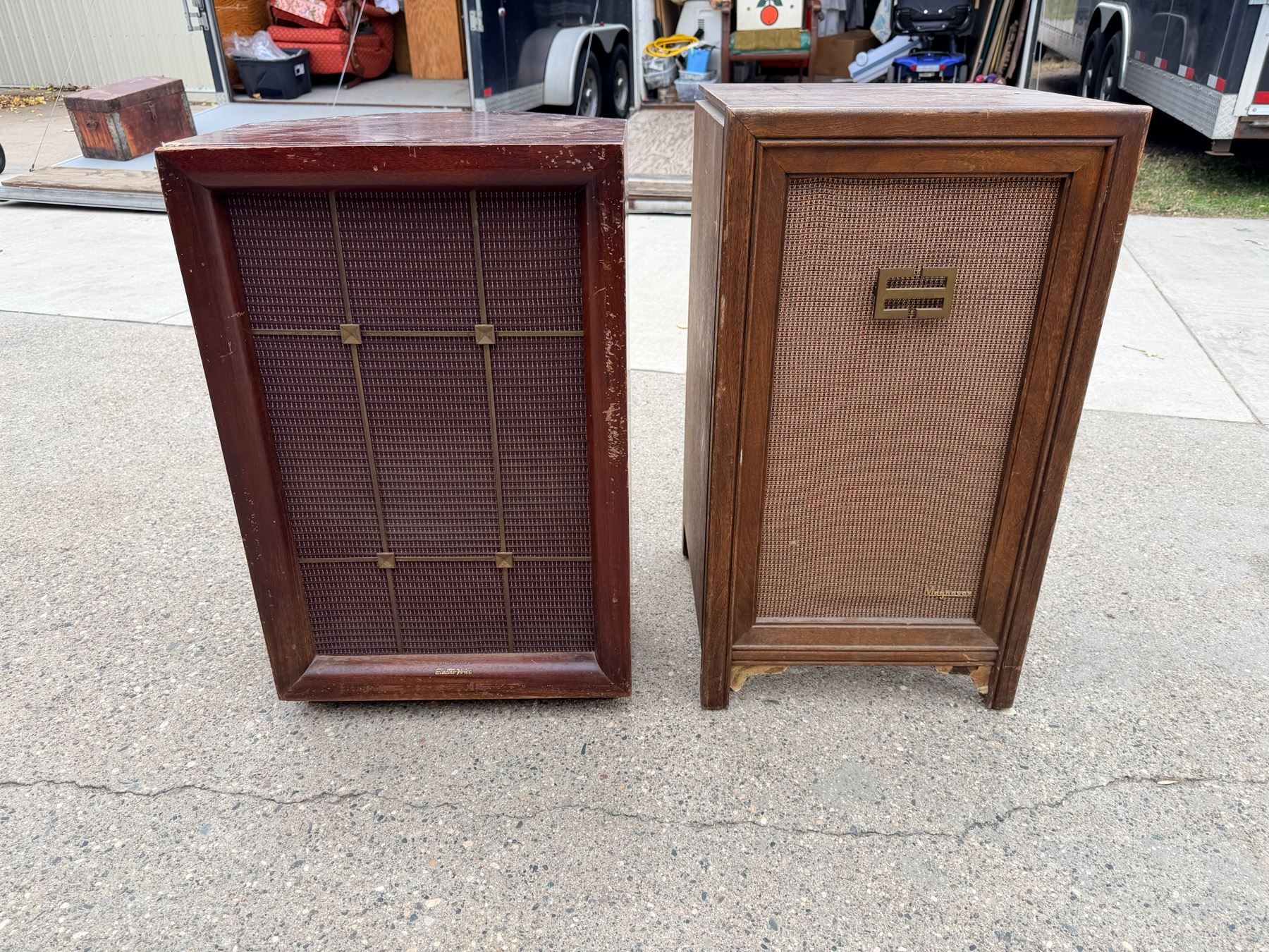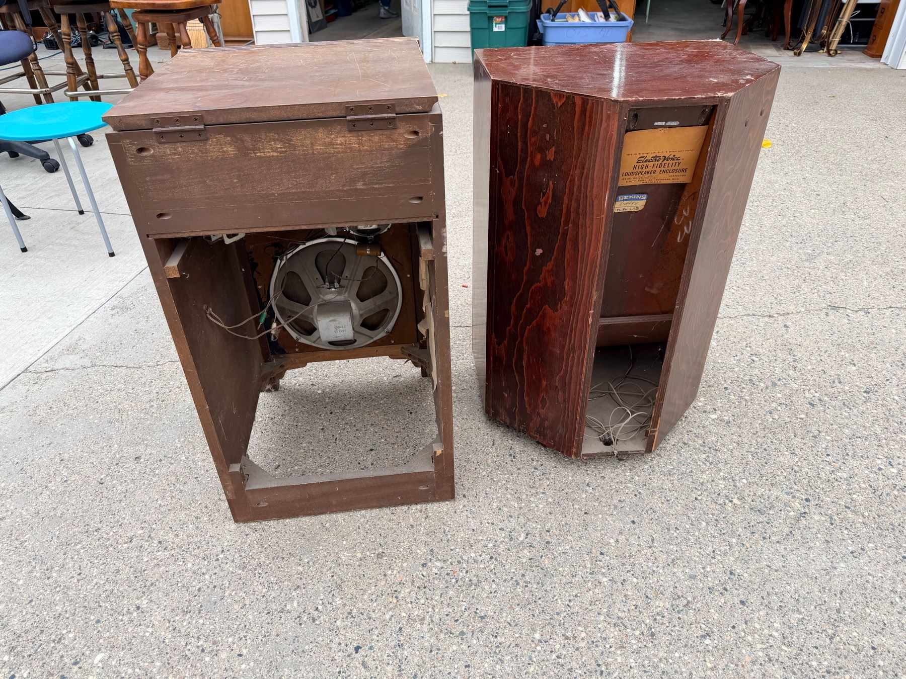 VINTAGE MAGNAVOX SPEAKER WITH TURNTABLE INSIDE TOP AND VINTAGE ELECTRO-VOICE SPEAKER
