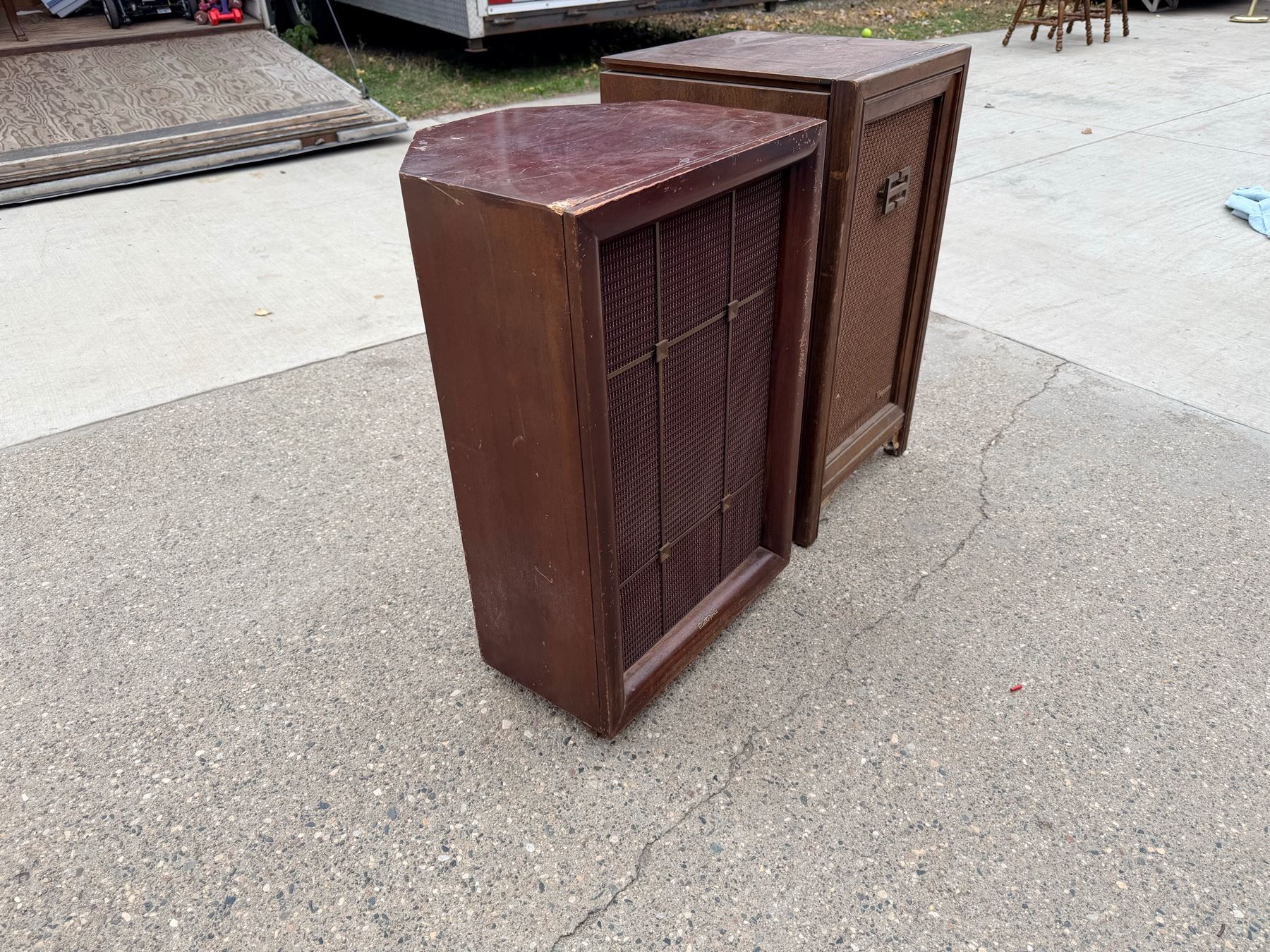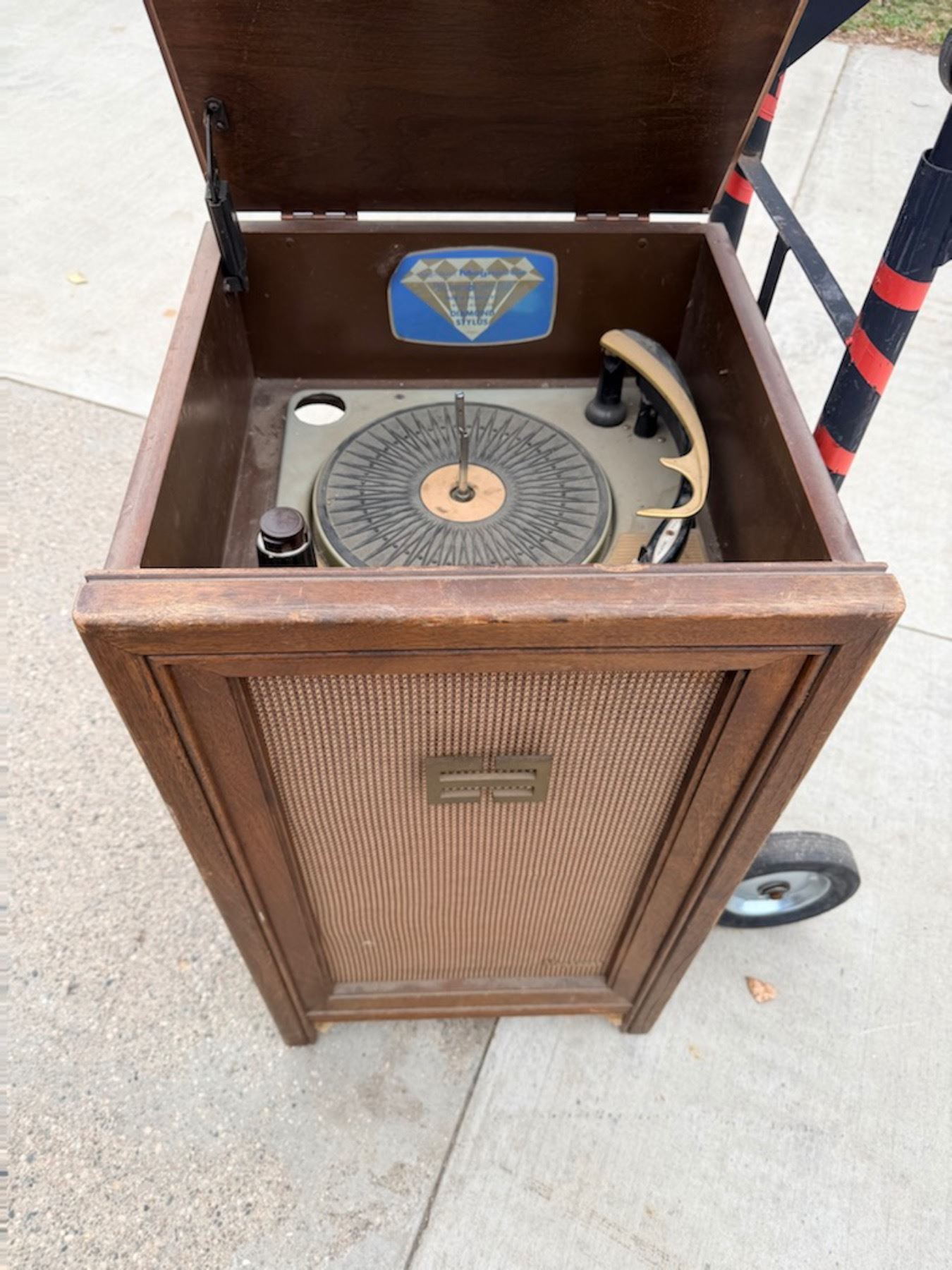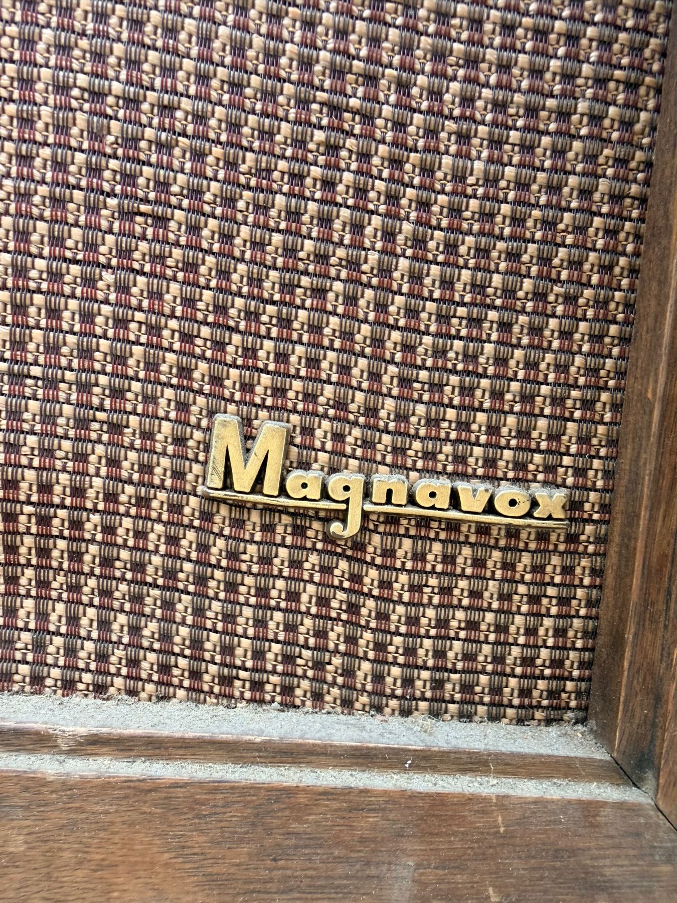 VINTAGE MAGNAVOX SPEAKER WITH TURNTABLE INSIDE TOP AND VINTAGE ELECTRO-VOICE SPEAKER