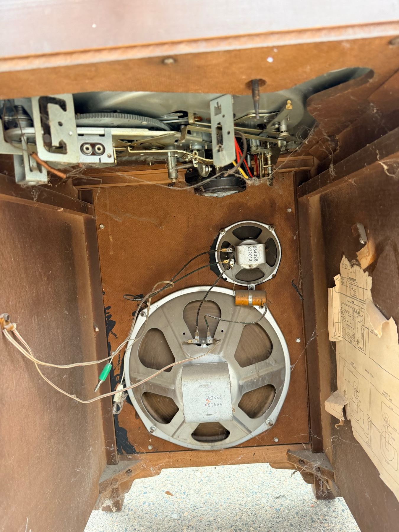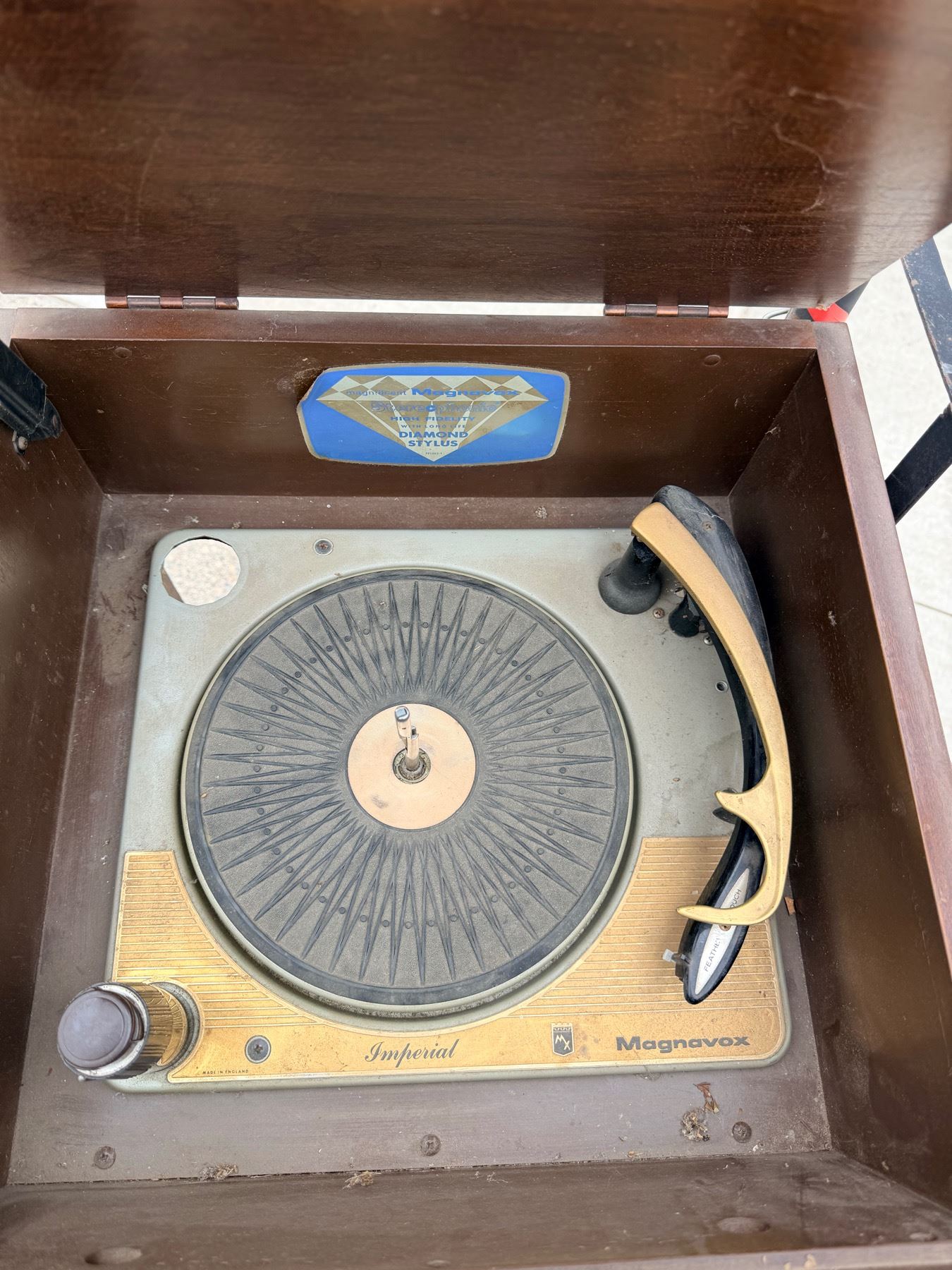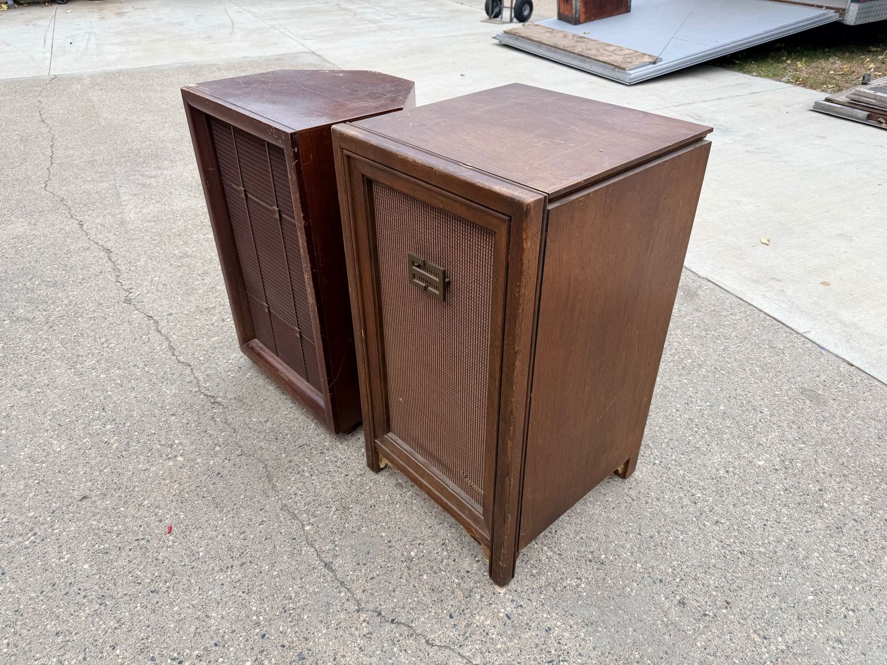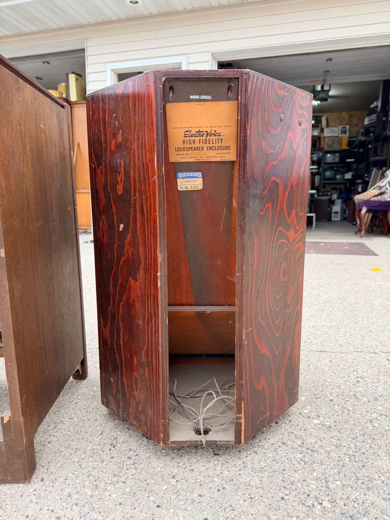 VINTAGE MAGNAVOX SPEAKER WITH TURNTABLE INSIDE TOP AND VINTAGE ELECTRO-VOICE SPEAKER