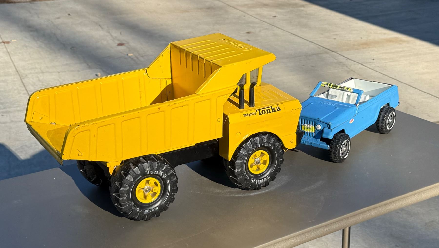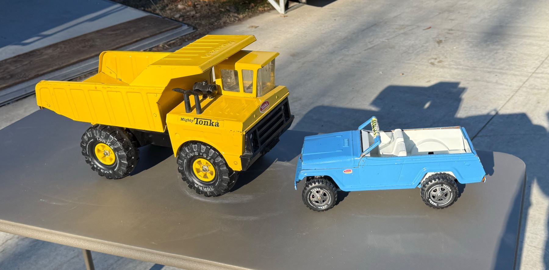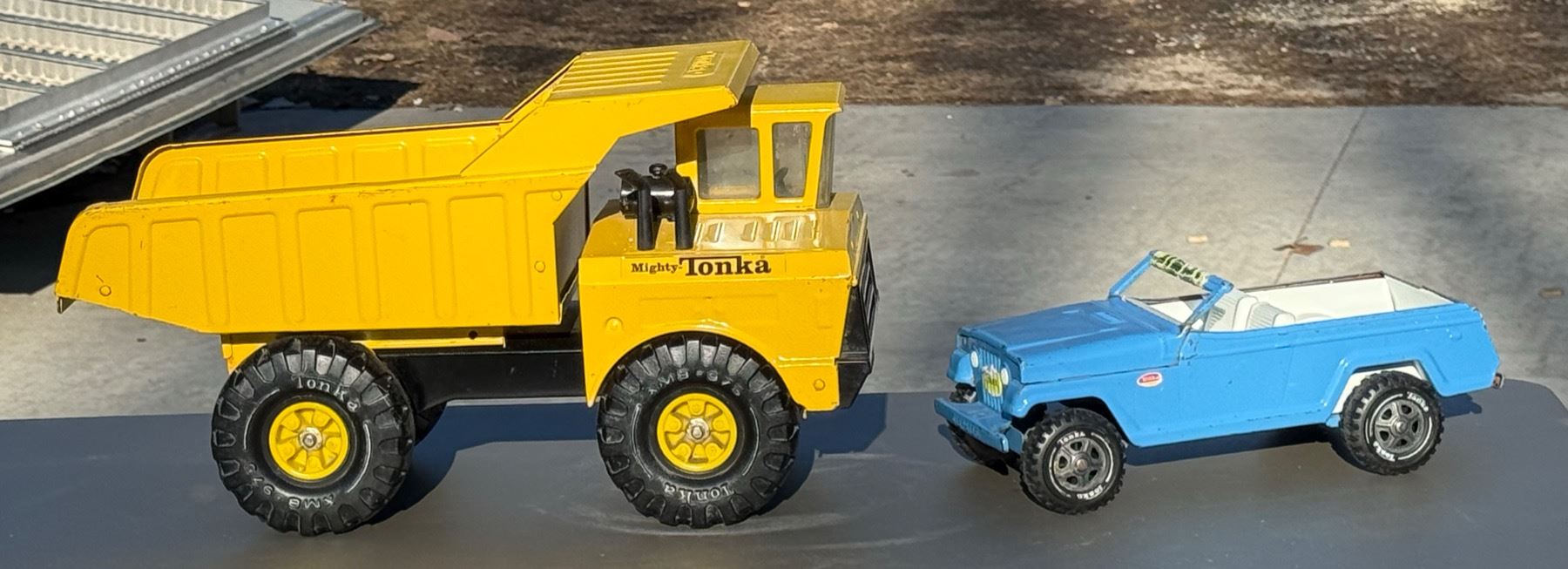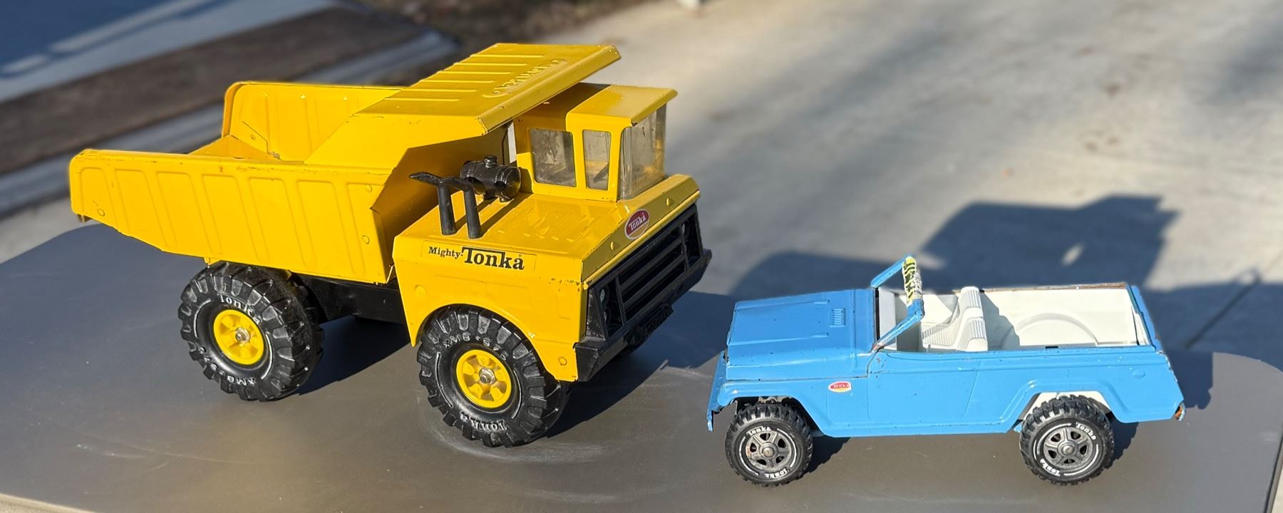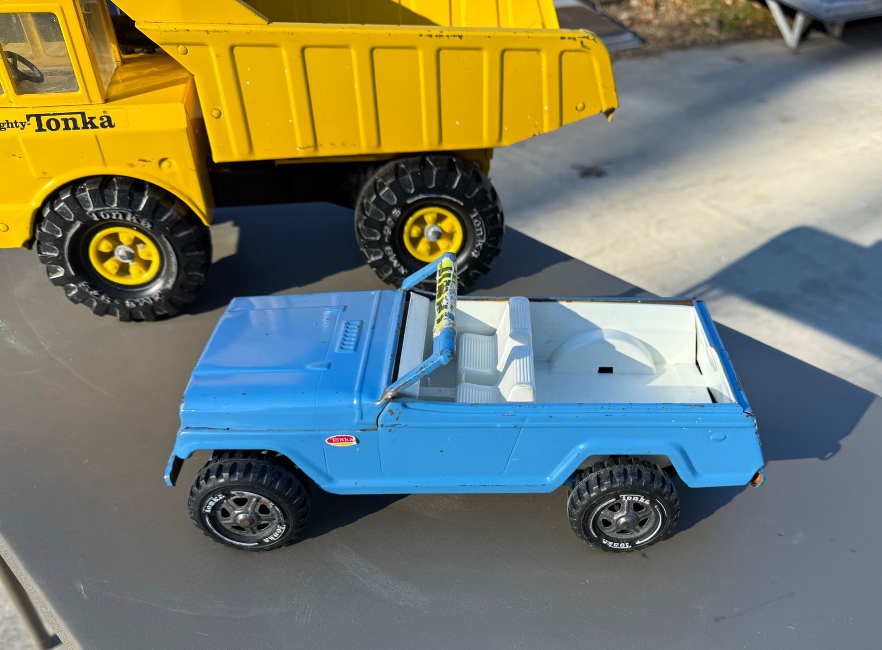 VINTAGE TONKA MIGHTY DUMP TRUCK AND VINTAGE TONKA JEEPSTER TOY