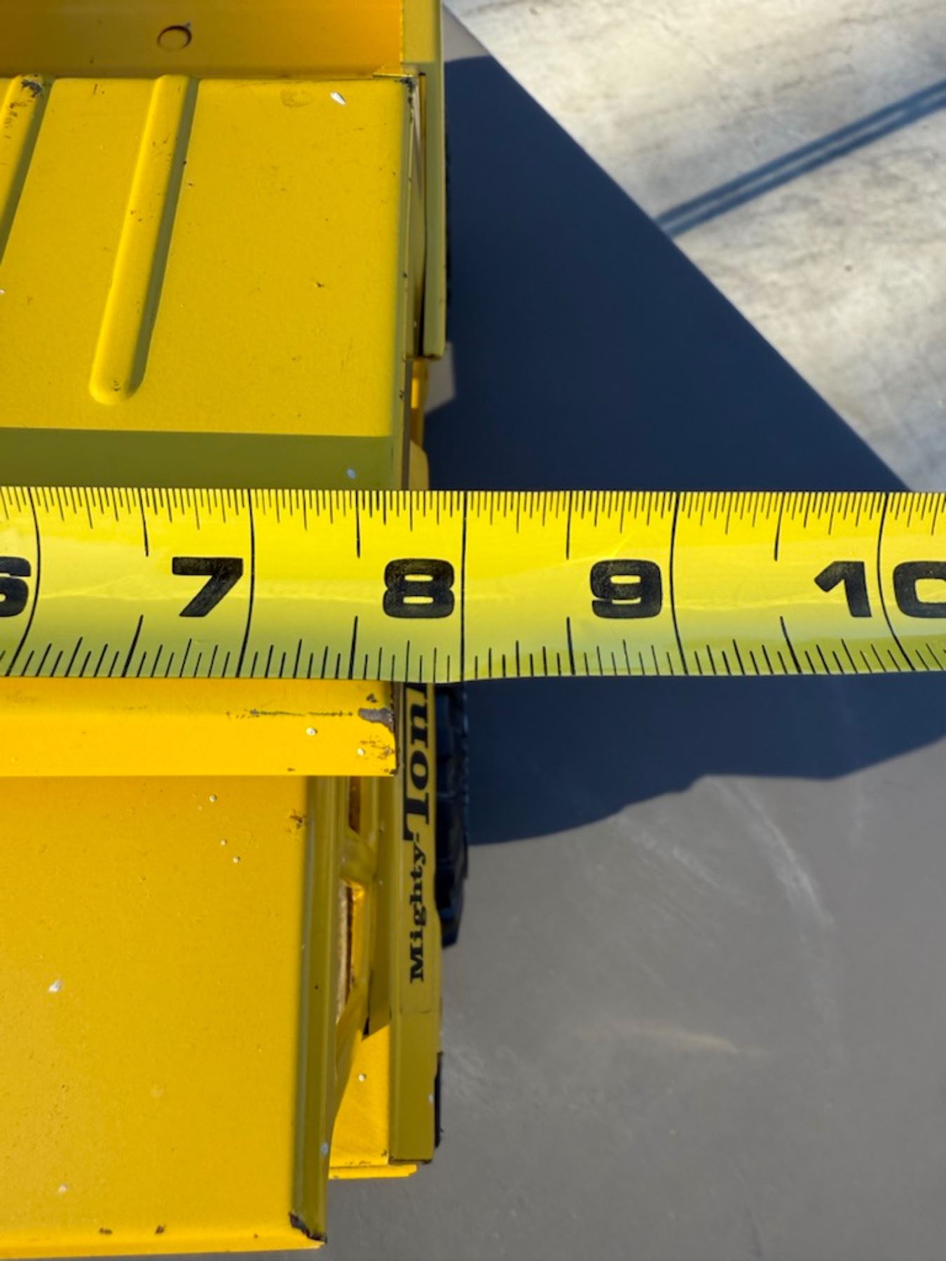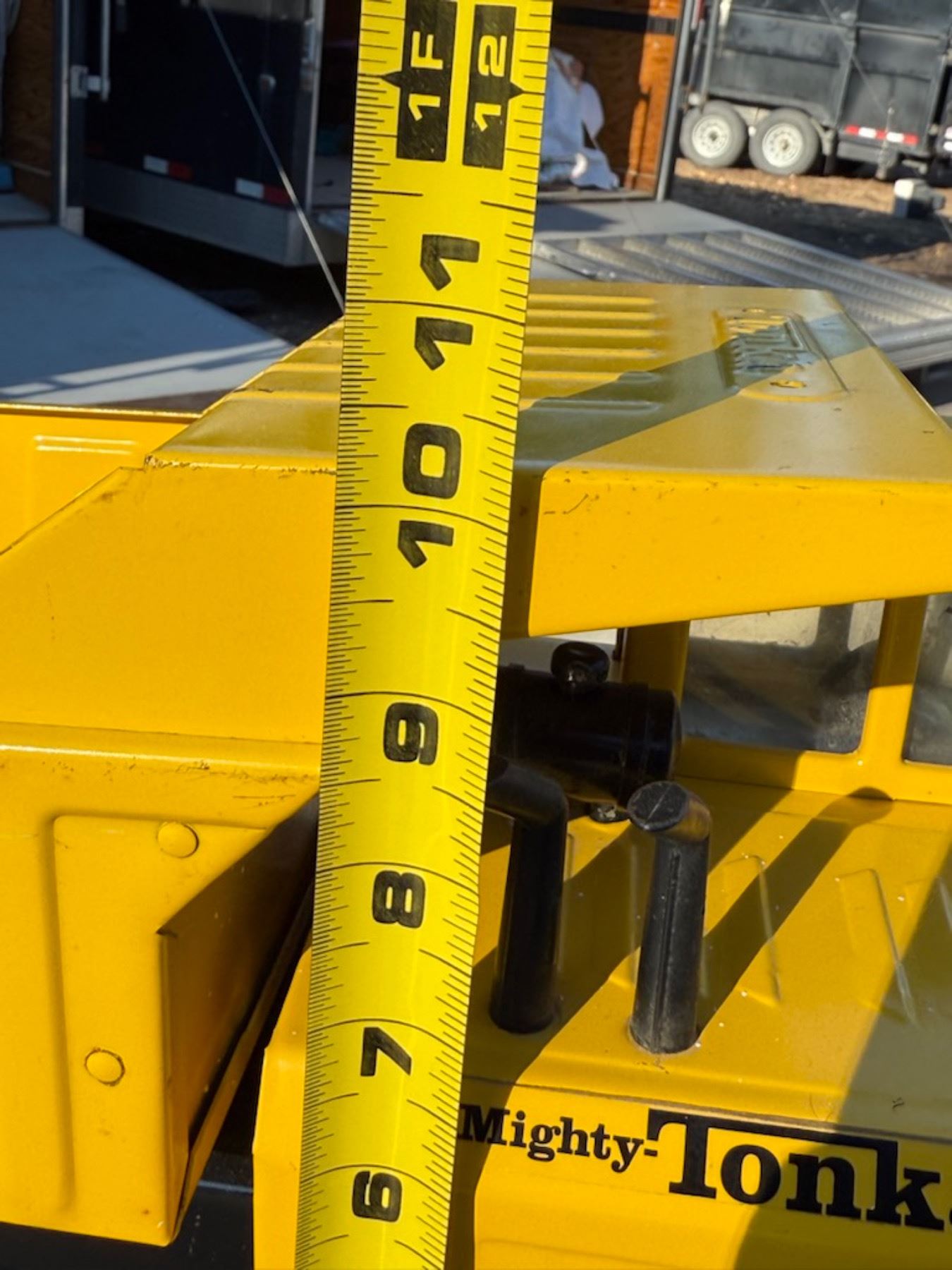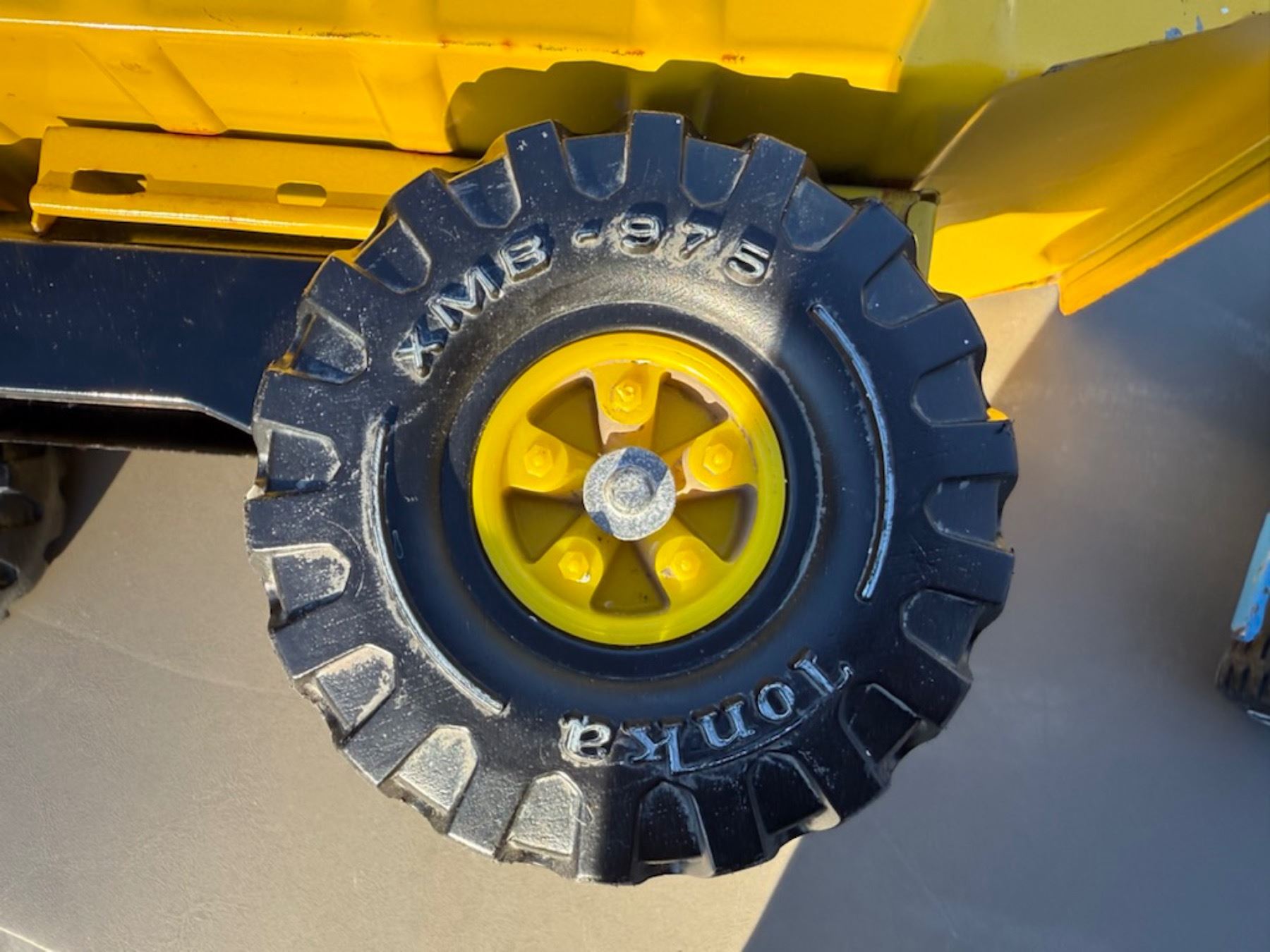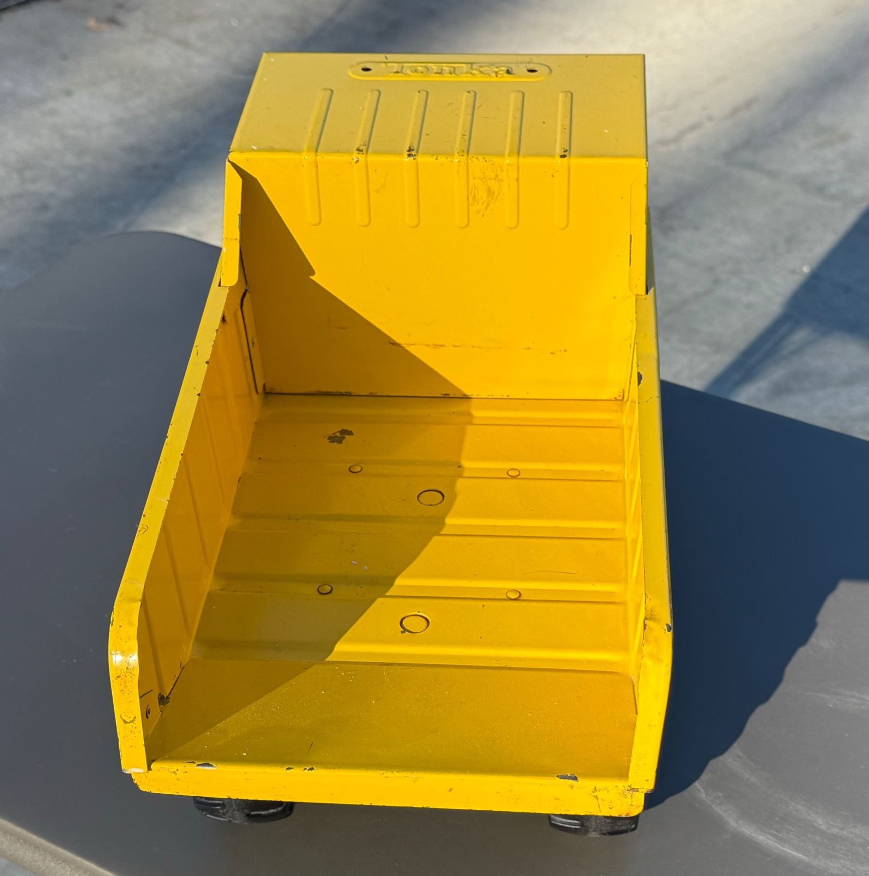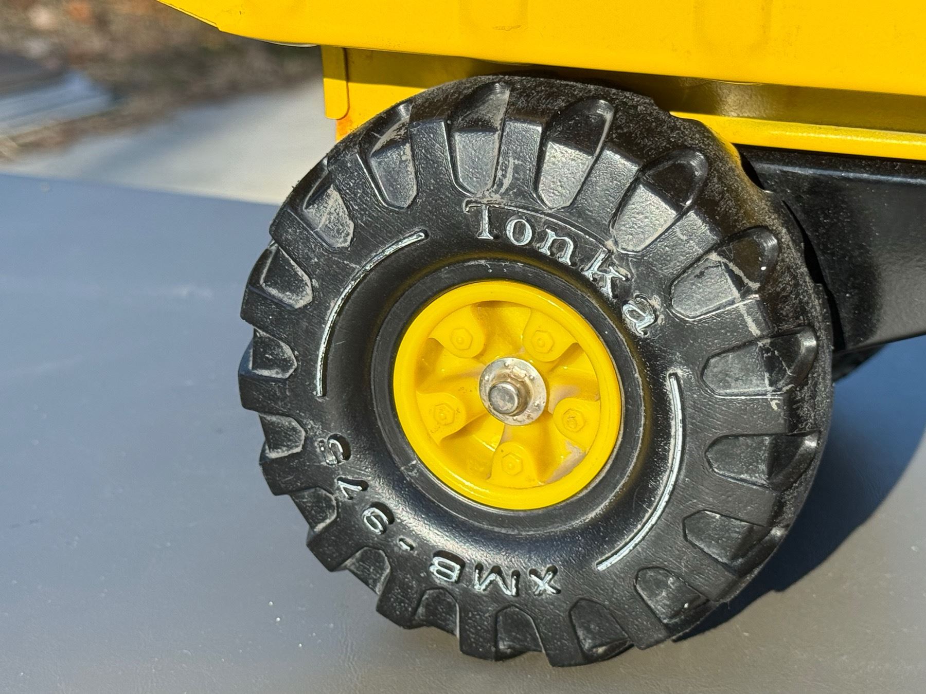 TONKA CLASSIC STEEL MIGHTY DUMP TRUCK, KNOWN FOR ITS DURABLE STEEL CONSTRUCTION AND MOVABLE BED FOR HAULING AND DUMPING; A POPULAR TOY FOR DECADES, DESIGNED TO WITHSTAND TOUGH PLAY AND INSPIRE IMAGINATIVE ADVENTURES
