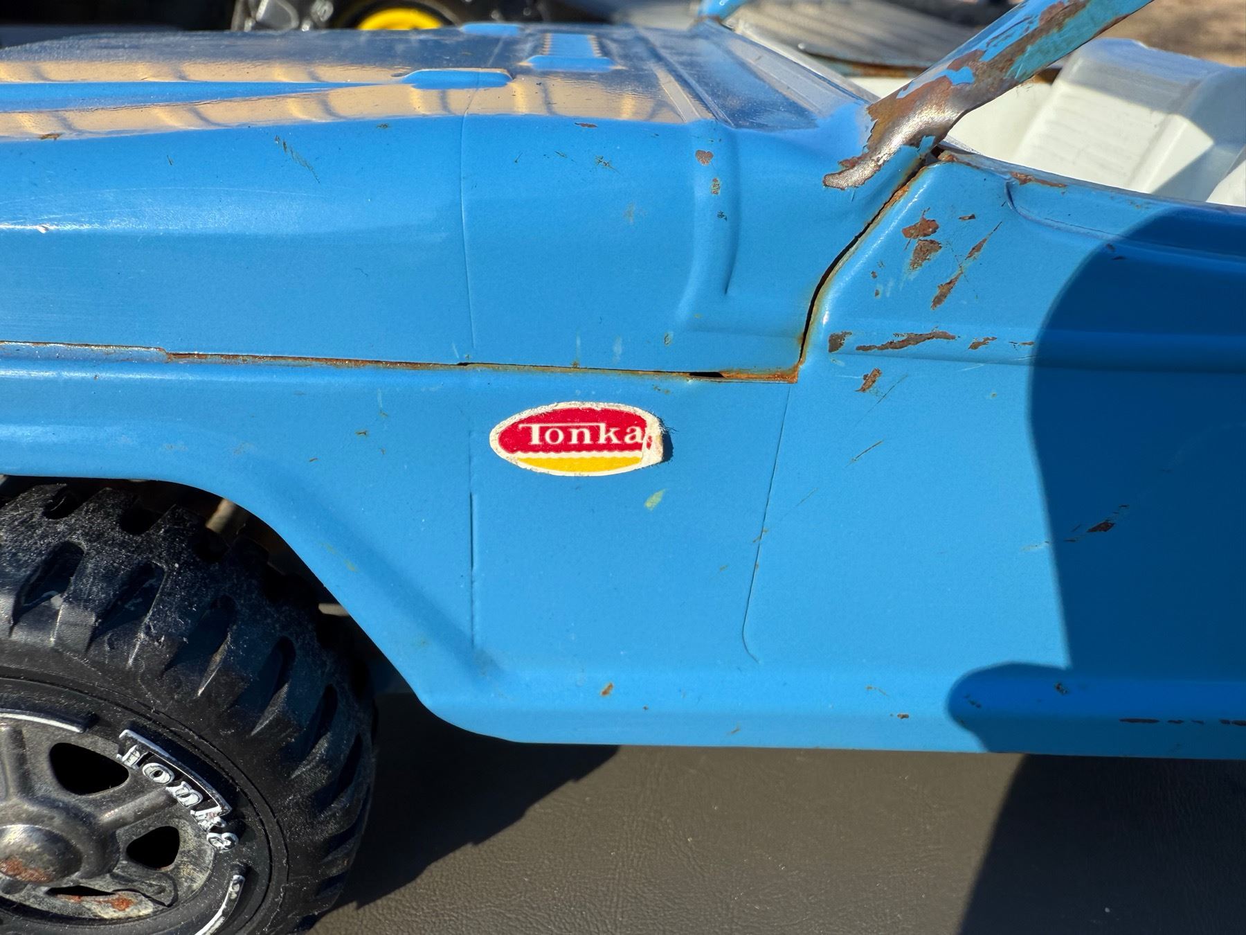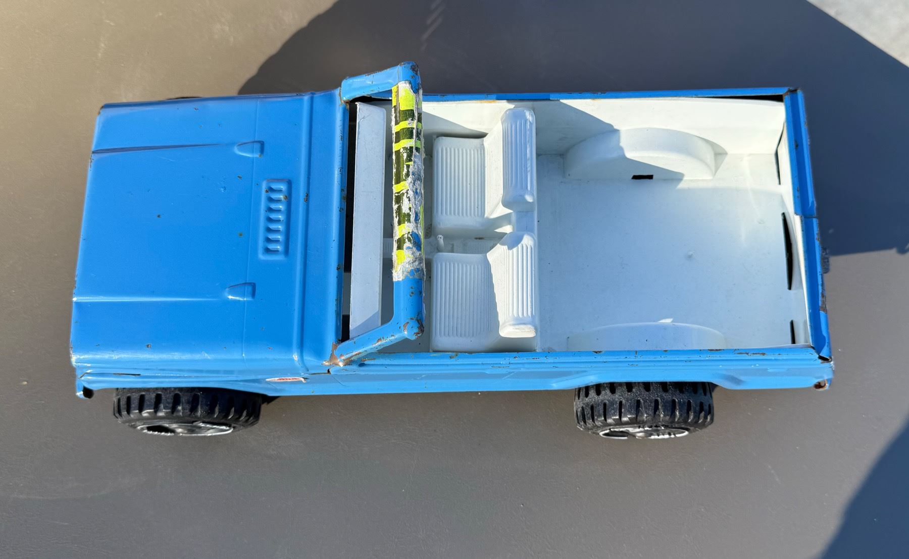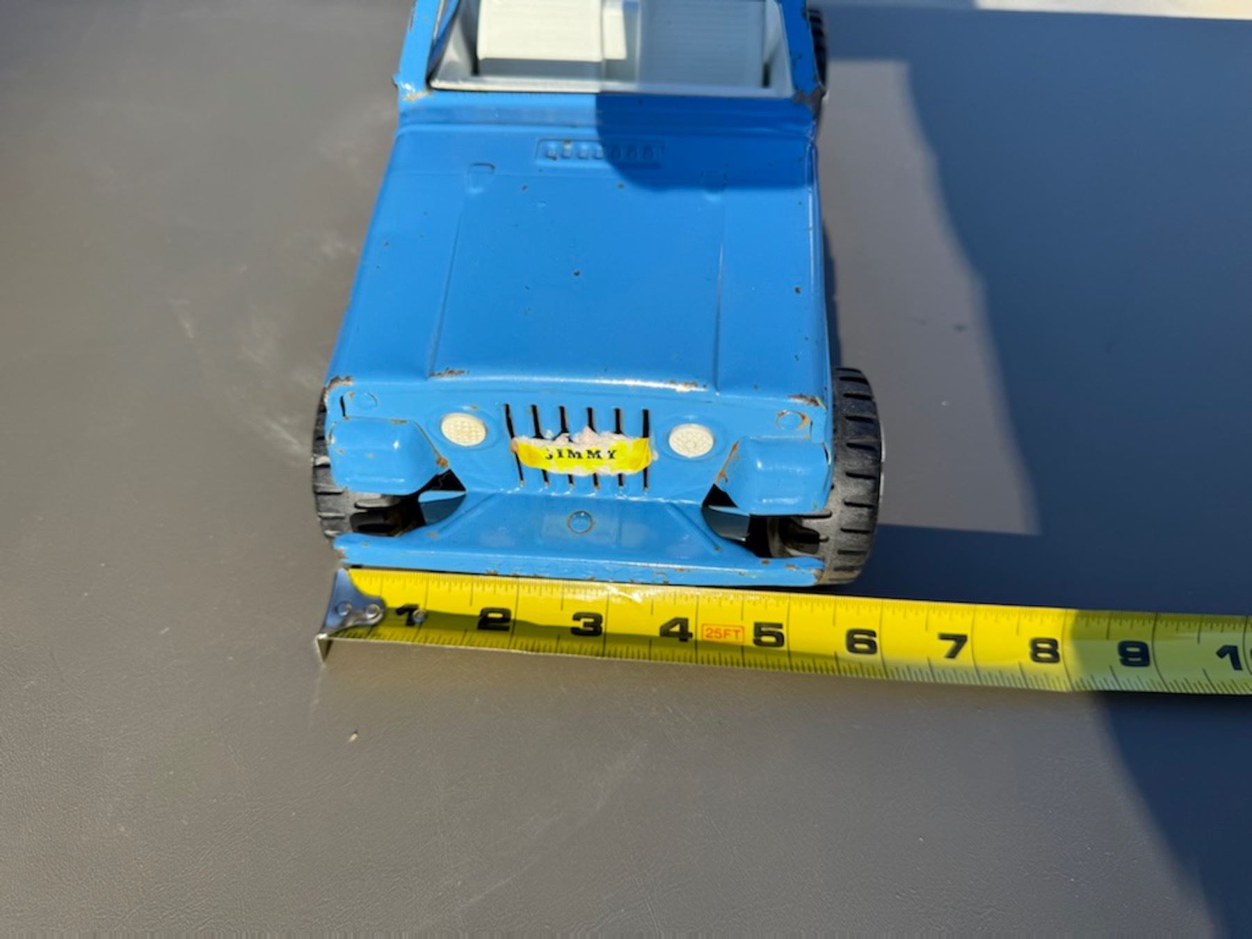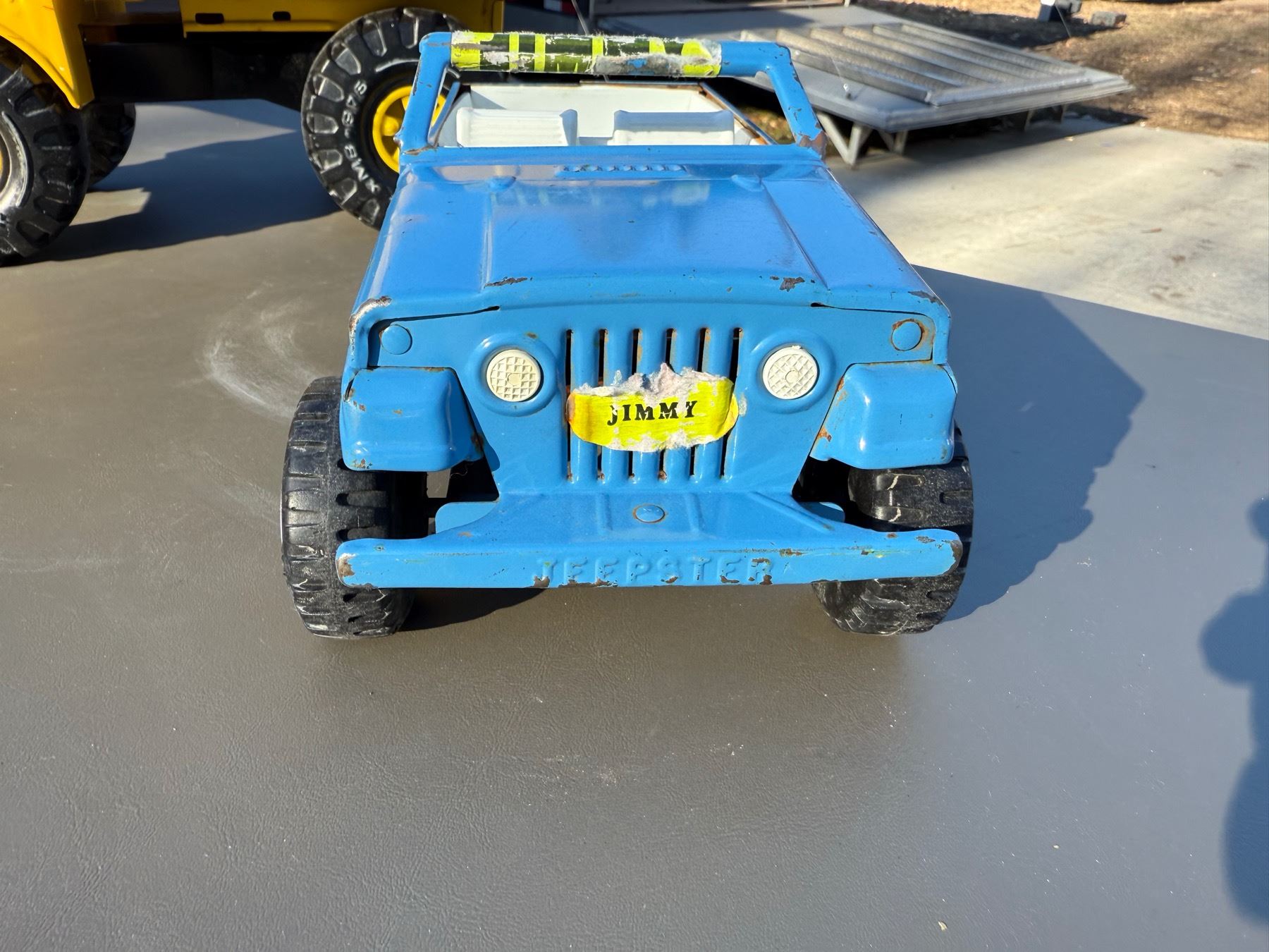 THE "JIMMY JEEPSTER" VERSION IS A SPECIFIC VARIANT OF THE TONKA JEEP LINE THAT BEGAN IN THE 1960; RUGGED, PRESSED-STEEL CONSTRUCTION AND FEATURES LIKE A FOLD-DOWN WINDSHIELD AND OFF-ROAD WHEELS