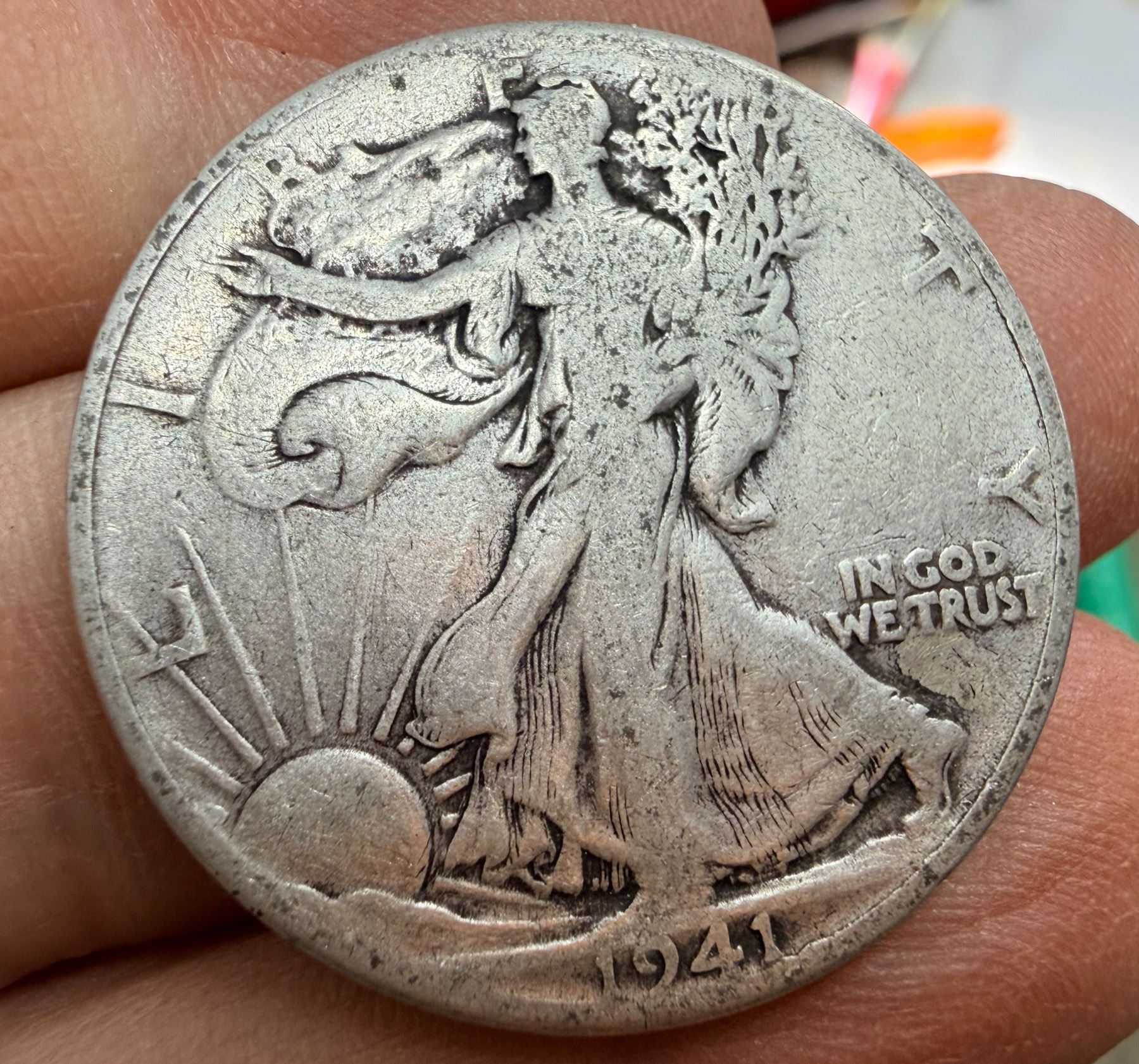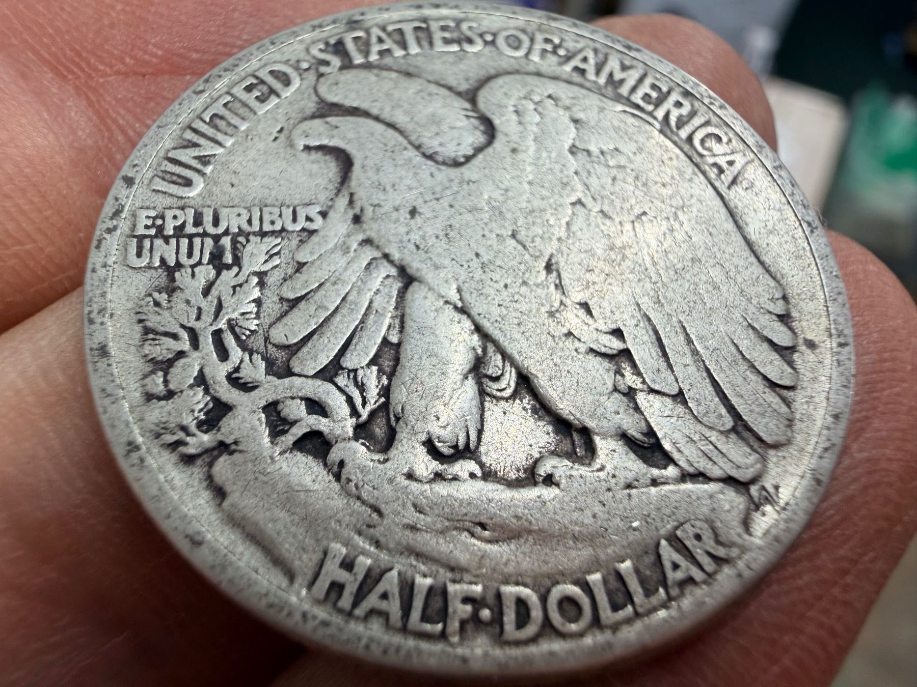 THE WALKING LIBERTY HALF DOLLAR IS 90 PERCENT SILVER AND 10 PERCENT COPPER WITH A TOTAL WEIGHT OF 12.5 GRAMS, CONTAINS 0.36169 TROY OUNCE OF PURE SILVER, AND WAS MINTED FROM 1916-1947