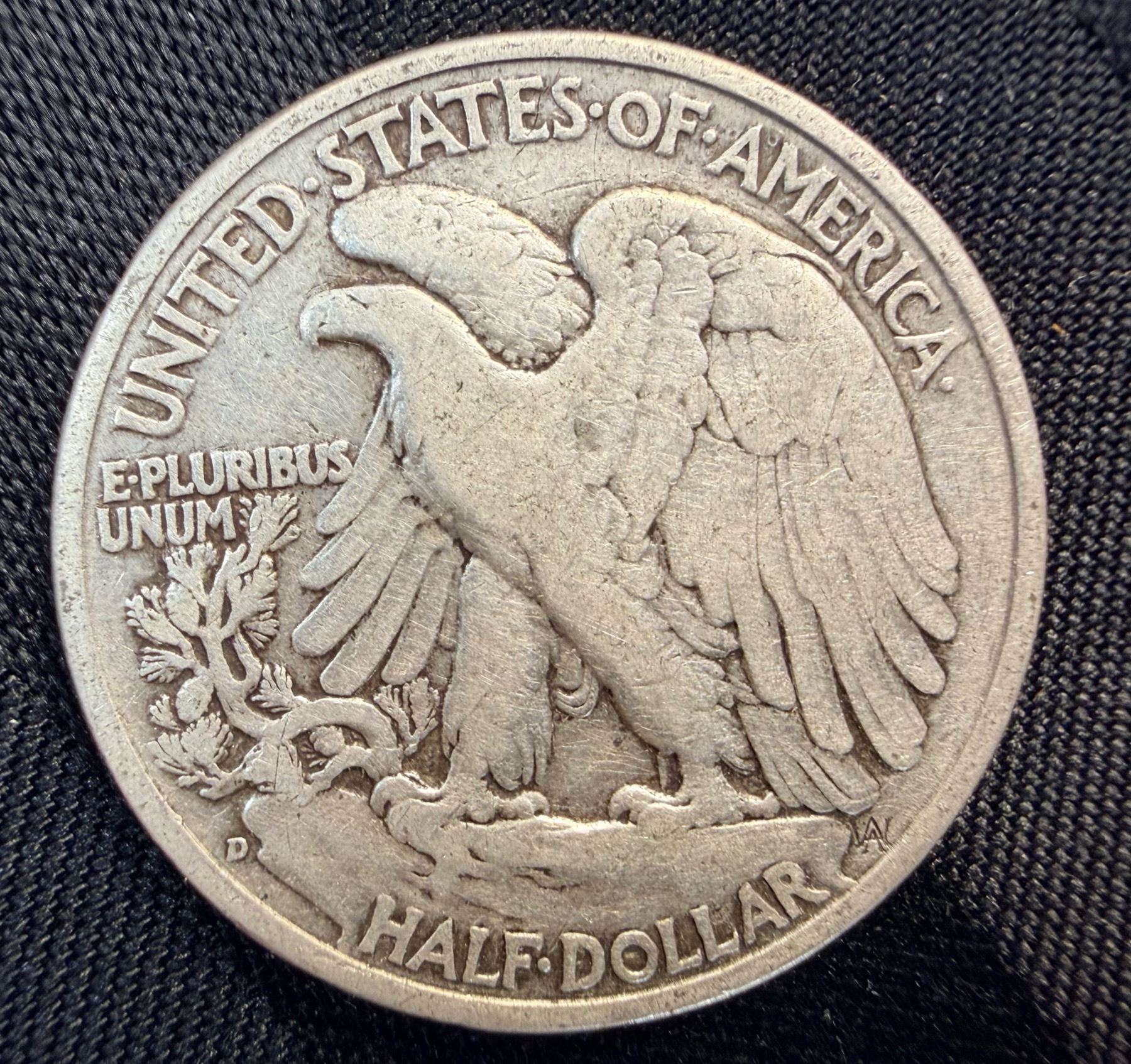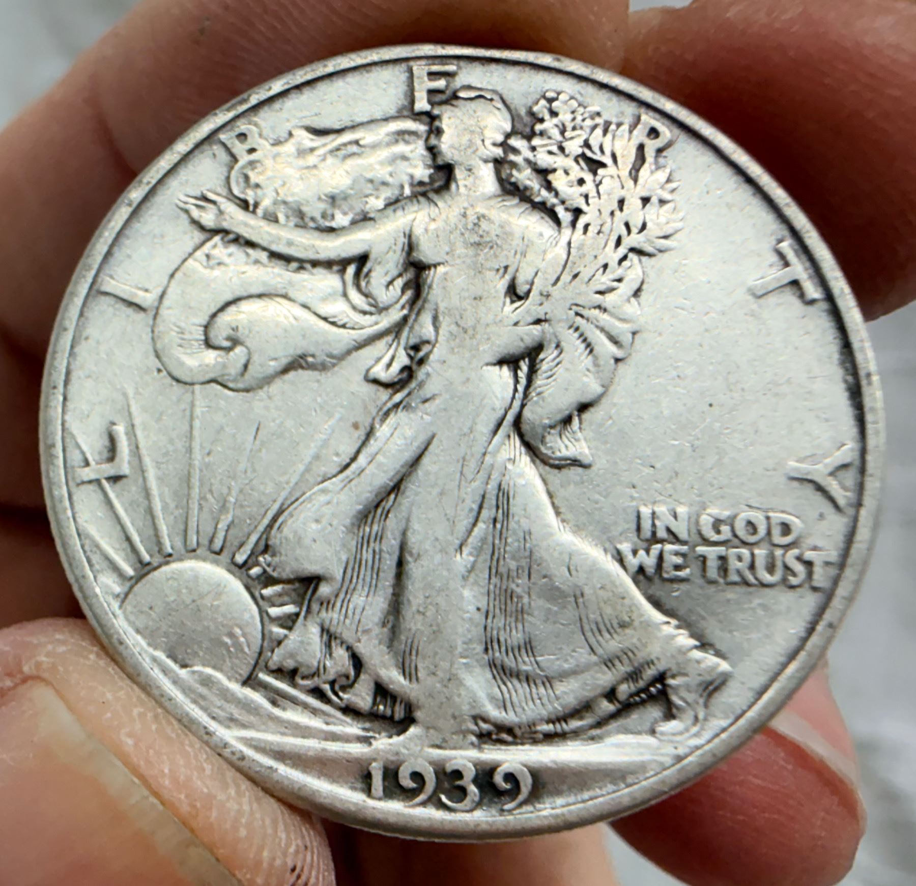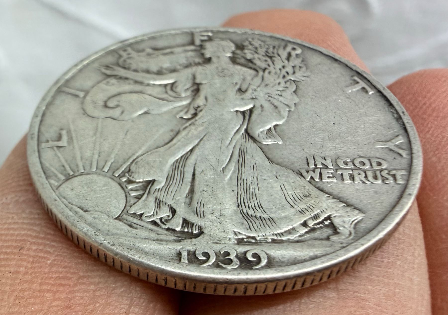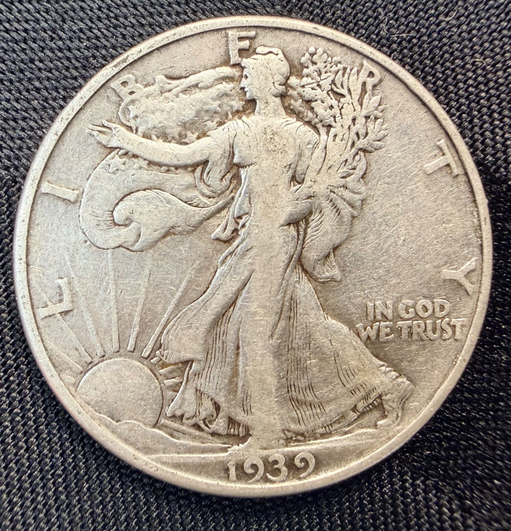 WALKING LIBERTY SILVER HALF DOLLAR - 1939D; DENVER MINT