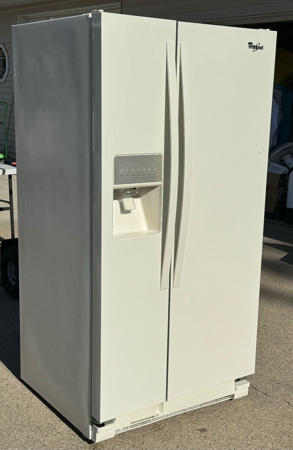 WHIRLPOOL SIDE BY SIDE REFRIGERATOR/FREEZER WITH IN-DOOR WATER AND ICE DISPENSER - WORKS!