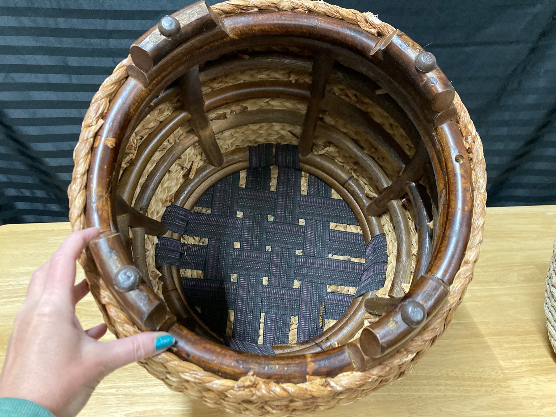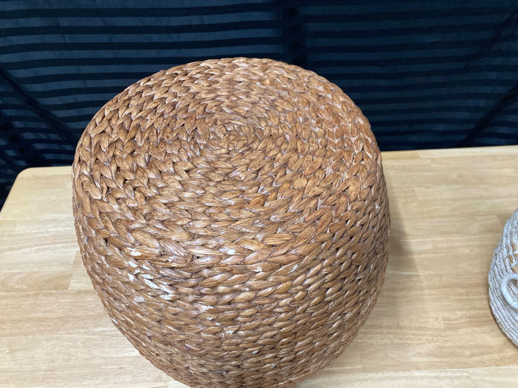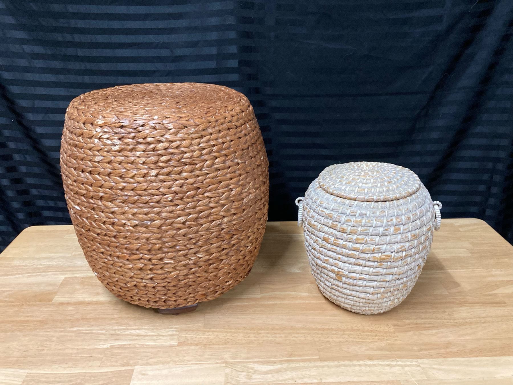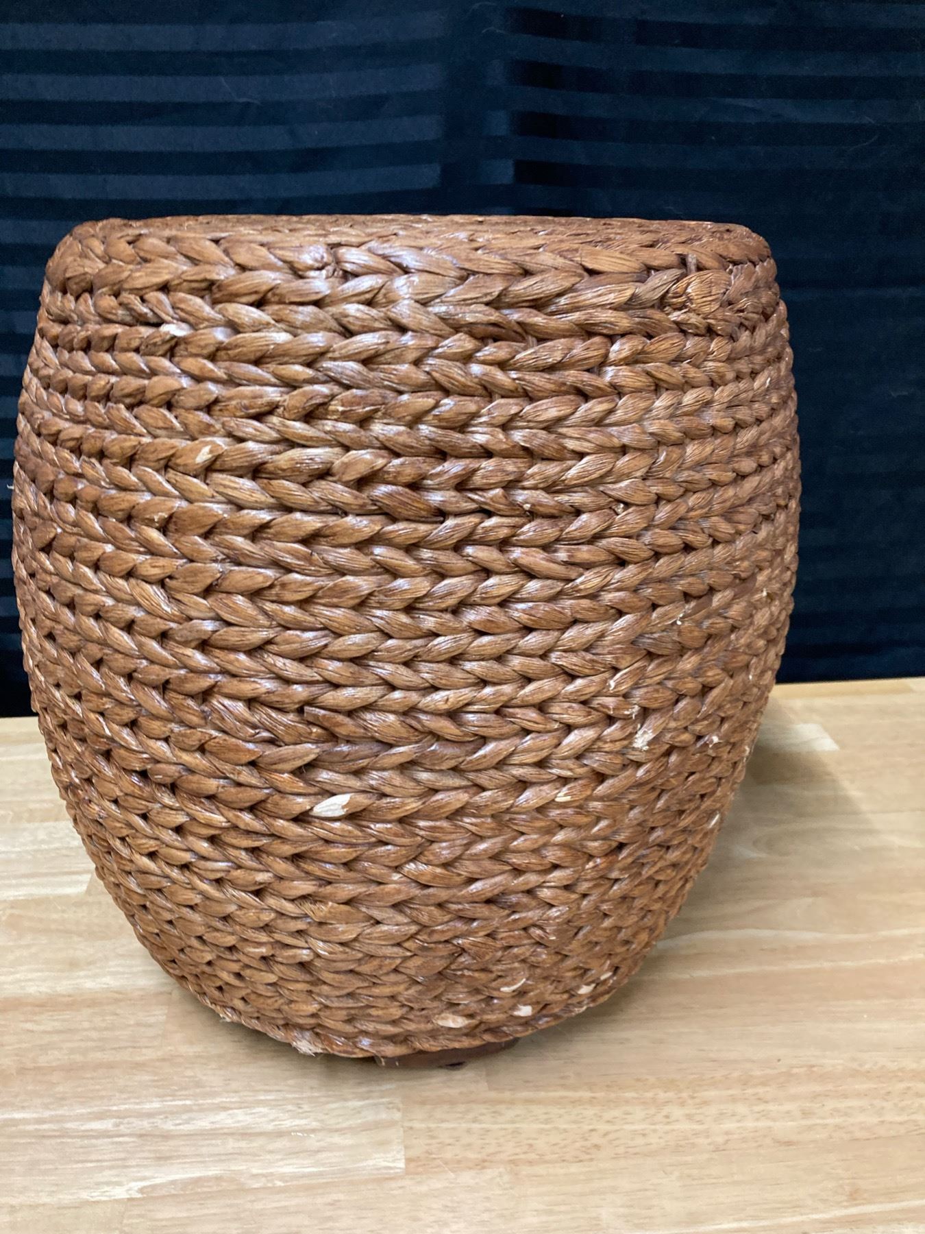 VINTAGE MID CENTURY BRAIDED ROPE STOOL WITH STORAGE