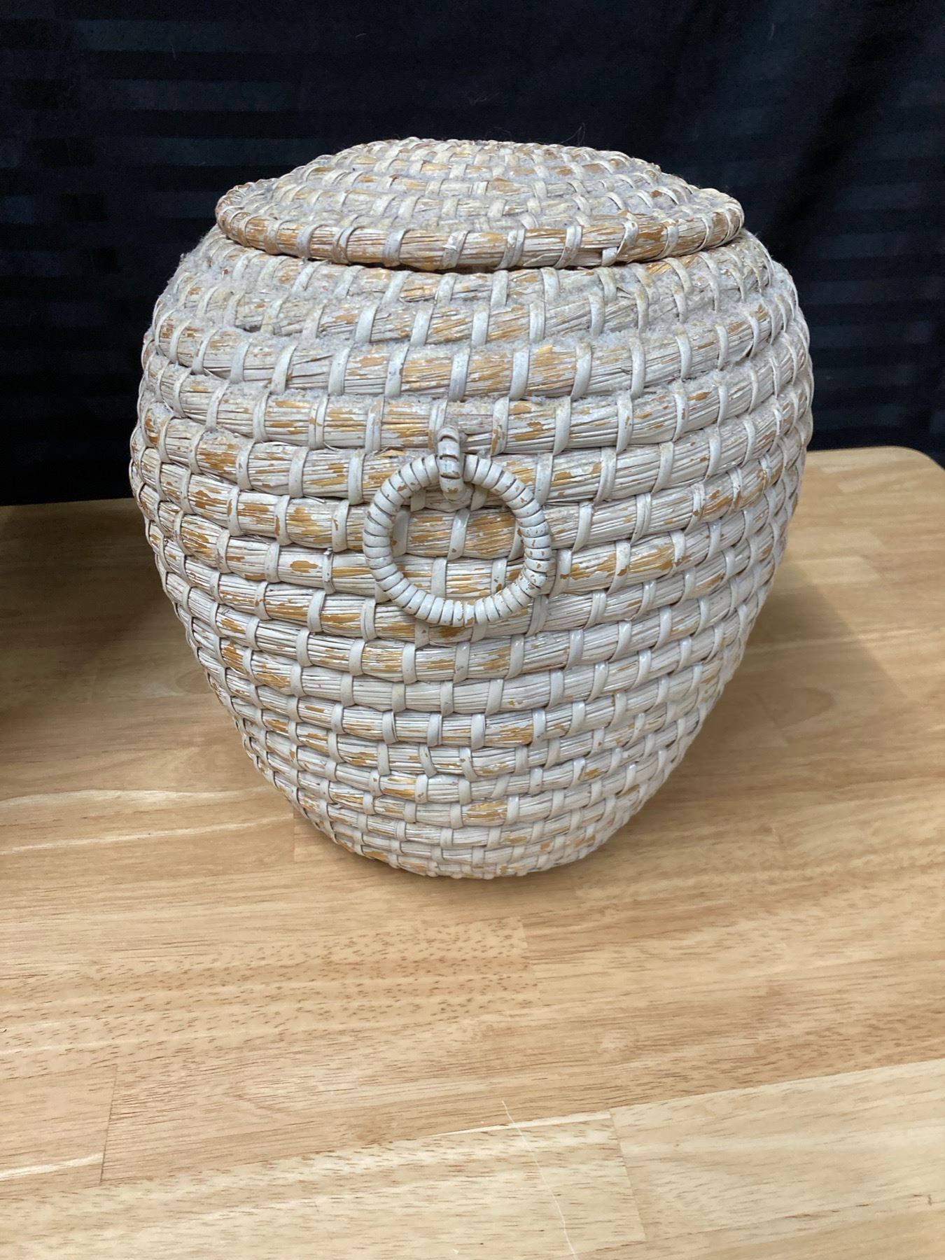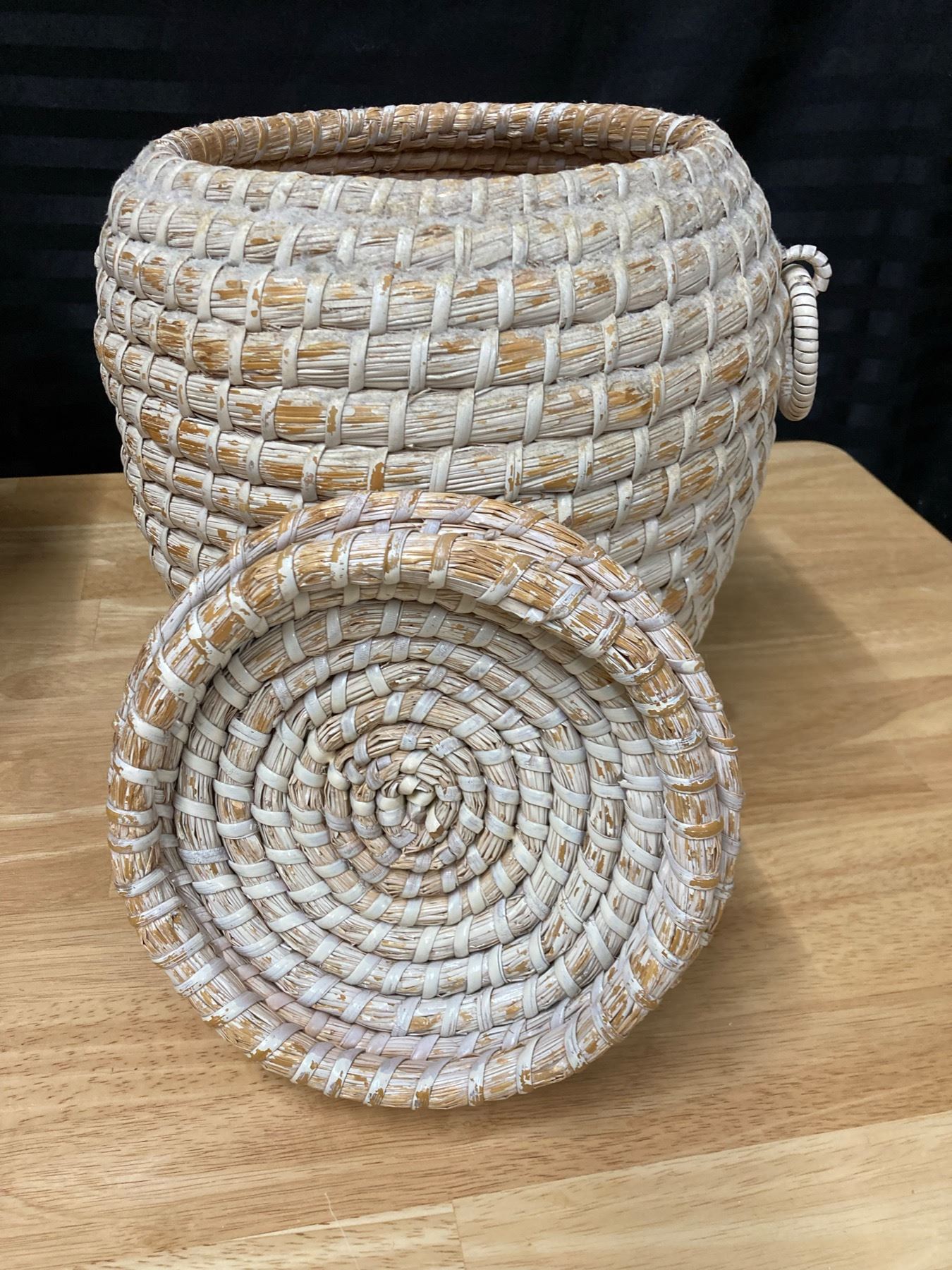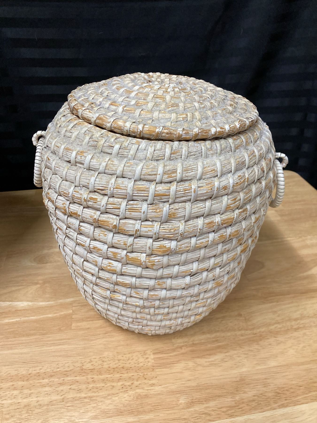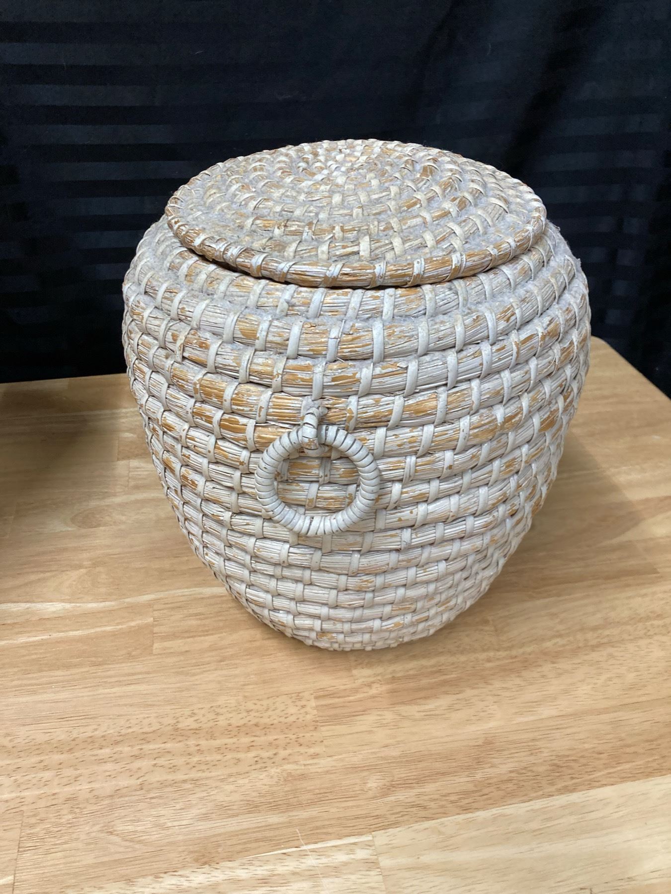 DECORATIVE WOVEN STORAGE BASKET WITH A LID