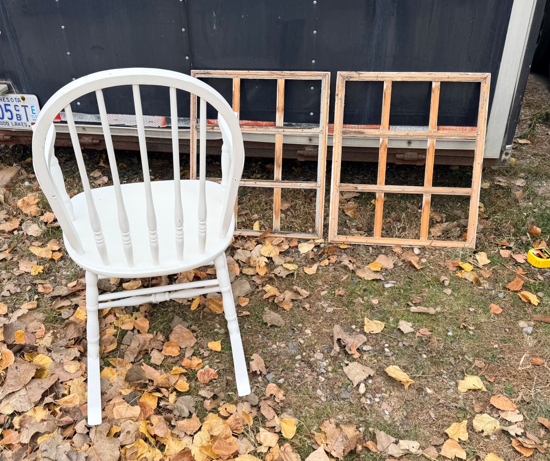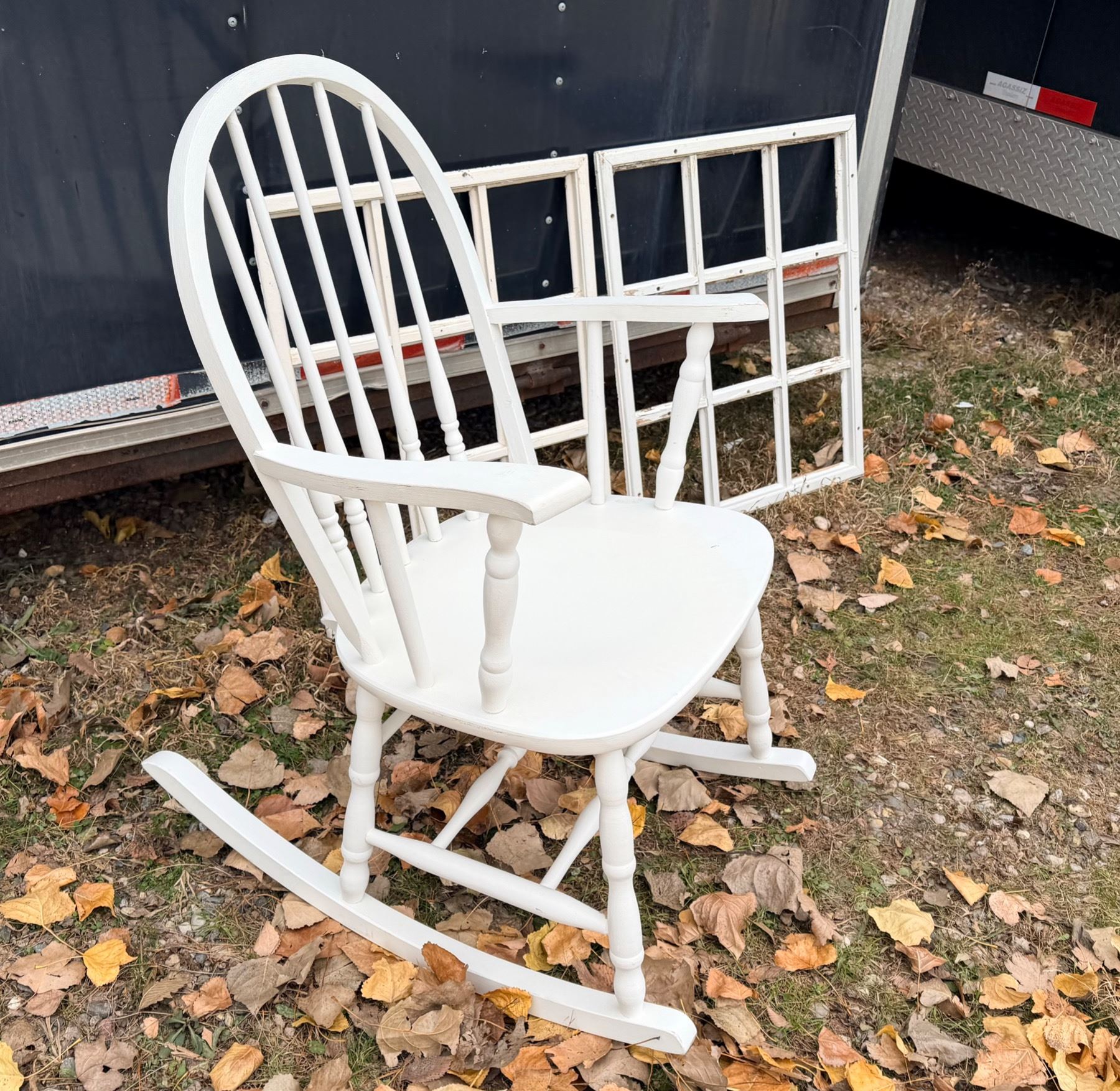 WOODEN ROCKING CHAIR AND TWO "WINDOWS"